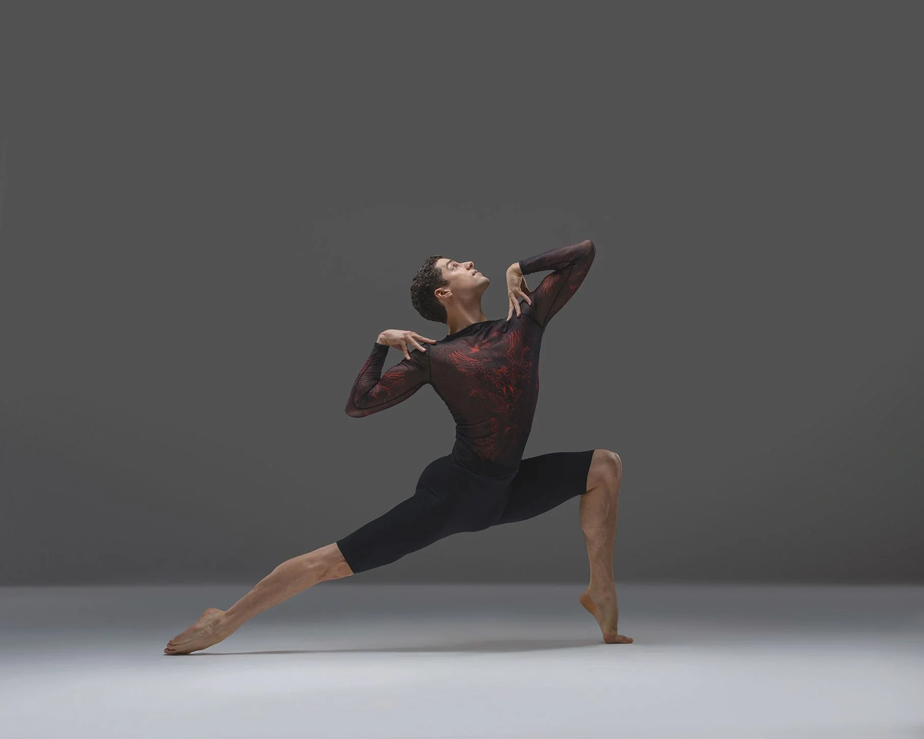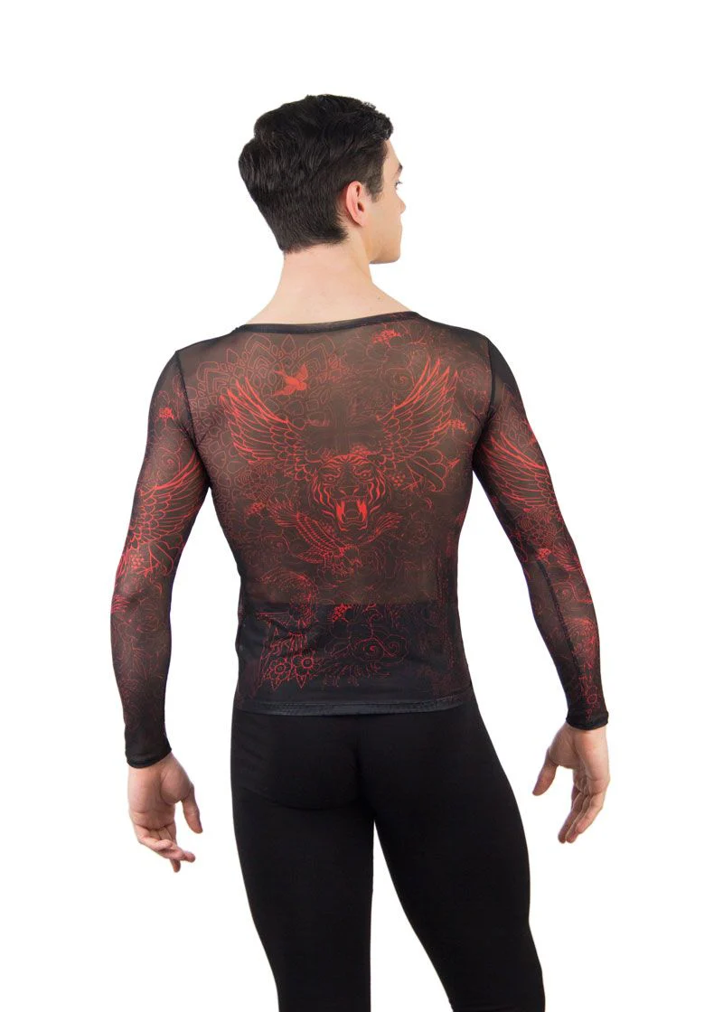 Camiseta de ballet para chico. El modelo ALESSIO de Ballet Rosa es ideal para hombre en clase de danza. De manga larga. Con tejido elástico semitransparente que se ajusta perfectamente al torso y estampado.