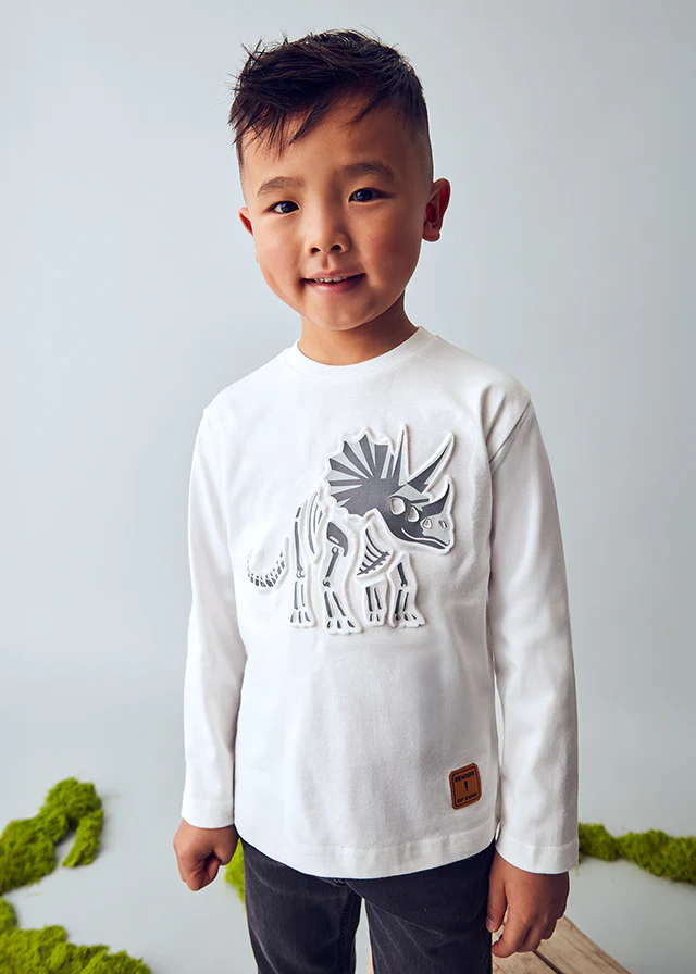 ¡Básica playera con imagen en 3D! ¡Los niños no querrán quitársela! De manga larga, cuello redondo y dibujo en el pecho con impresión 3D.