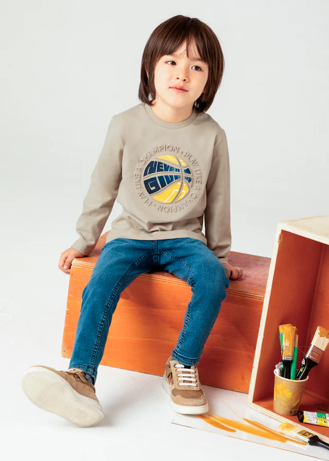 ¡Básica playera con imagen en 3D! ¡Los niños no querrán quitársela! De manga larga, cuello redondo y dibujo en el pecho con impresión 3D.