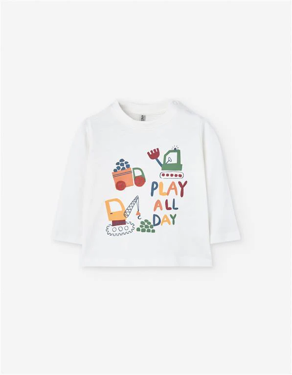 ¡Padrisima playera con diseño estampada! De cuello redondo, manga larga, dibujo estampado con letrero y cierre de botones a presión por el hombro para facilitar su puesta.