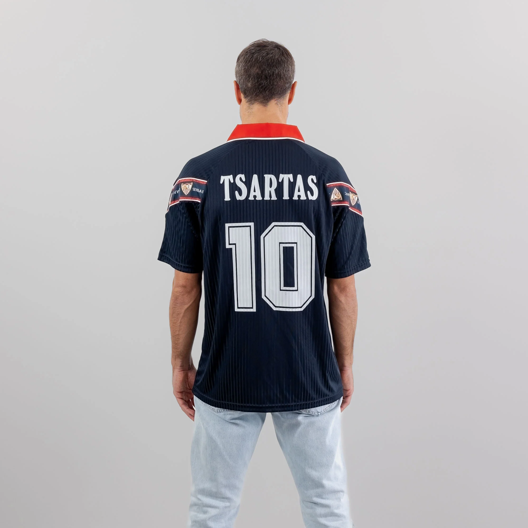 Revive la gloria con esta camiseta retro inspirada en la equipación que vestían los jugadores del Sevilla Fútbol Club aquella temporada.