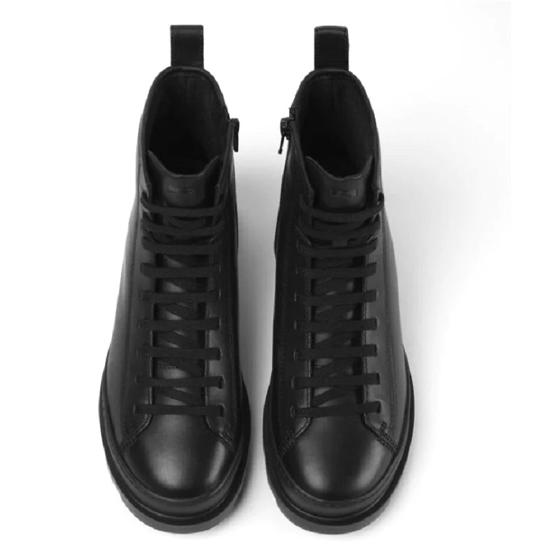 Botas de piel en color negro con cordones y suelas EVA para mujer. Un modelo original Camper desde 1986 con un icónico diseño urbano. Brutus es duradero, gracias a la costura 360º, y cuenta con tecnología que le ofrece ligereza.