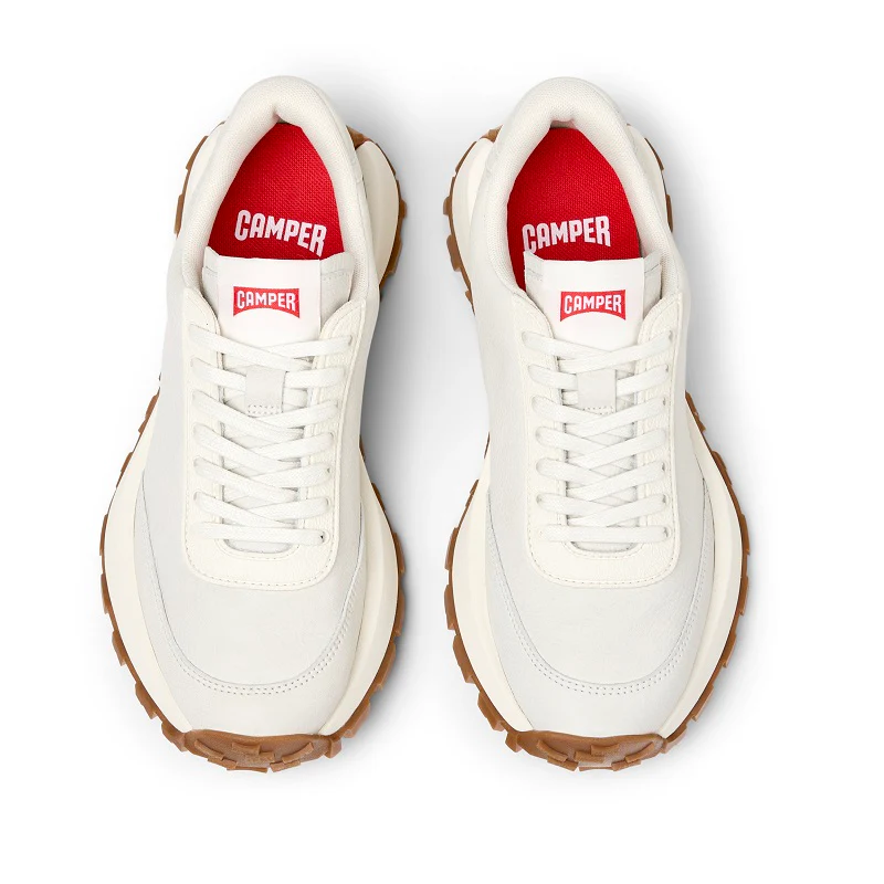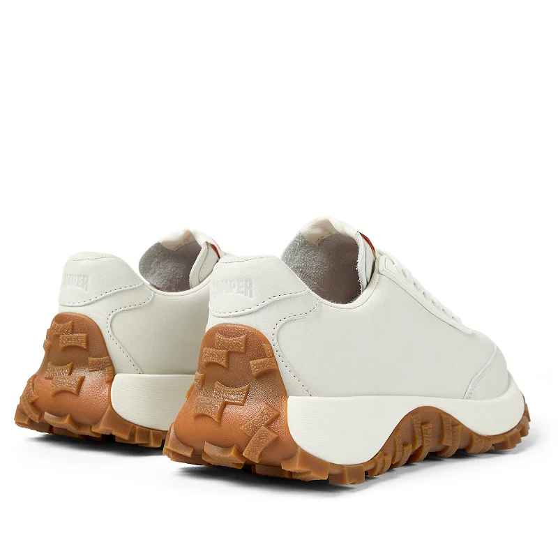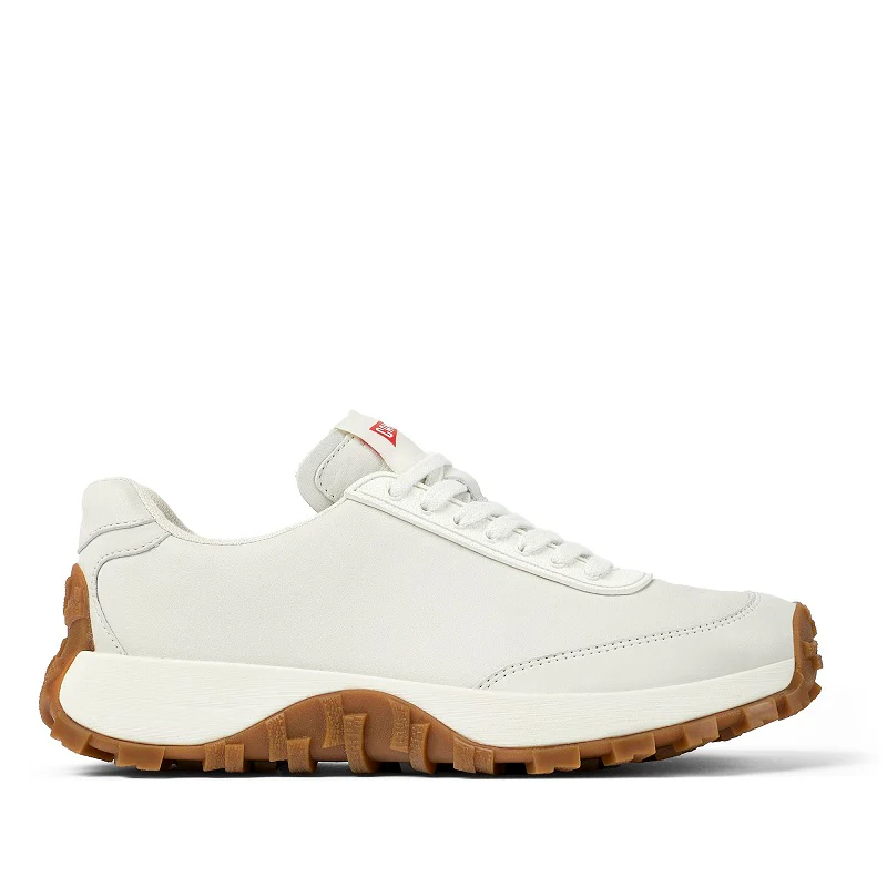 Sneakers para mujer en piel blanca no teñida con plantillas OrthoLite® Recycled™, entresuela de EVA y suelas Vibram. El Drift Trail fusiona innovación de alto rendimiento con una estética vintage.