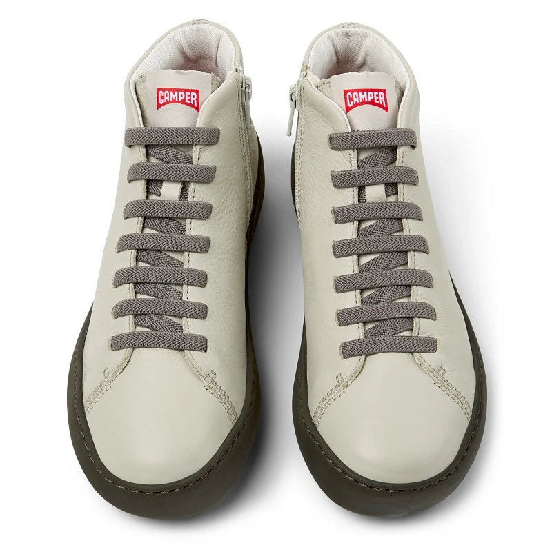 Botín deportivo Camper Peu Touring que combina estilo y comodidad para el día a día. Confeccionado en piel de becerro de primera calidad en tono beige neutro, cuenta con plantilla OrthoLite® Recycled™ que proporciona soporte y amortiguación superior. Los cordones elásticos facilitan el calzado rápido, mientras que la suela de EVA con material reciclado ofrece ligereza y flexibilidad. Forro de poliéster reciclado y plantilla extraíble para mayor versatilidad. Un calzado versátil que se adapta a cualquier look casual.