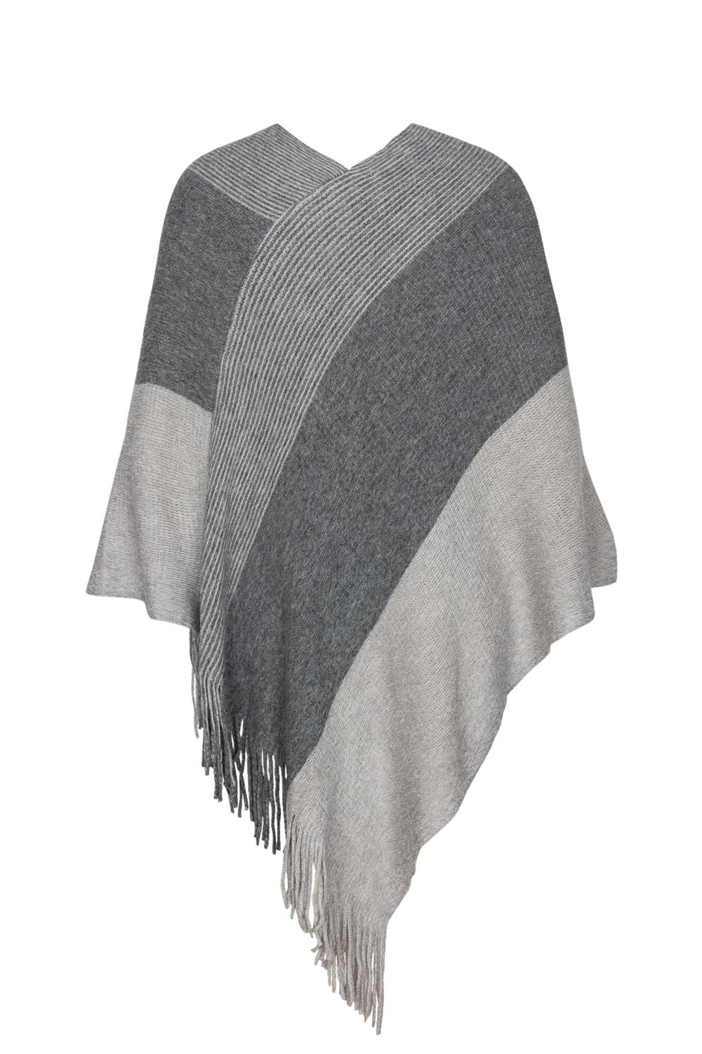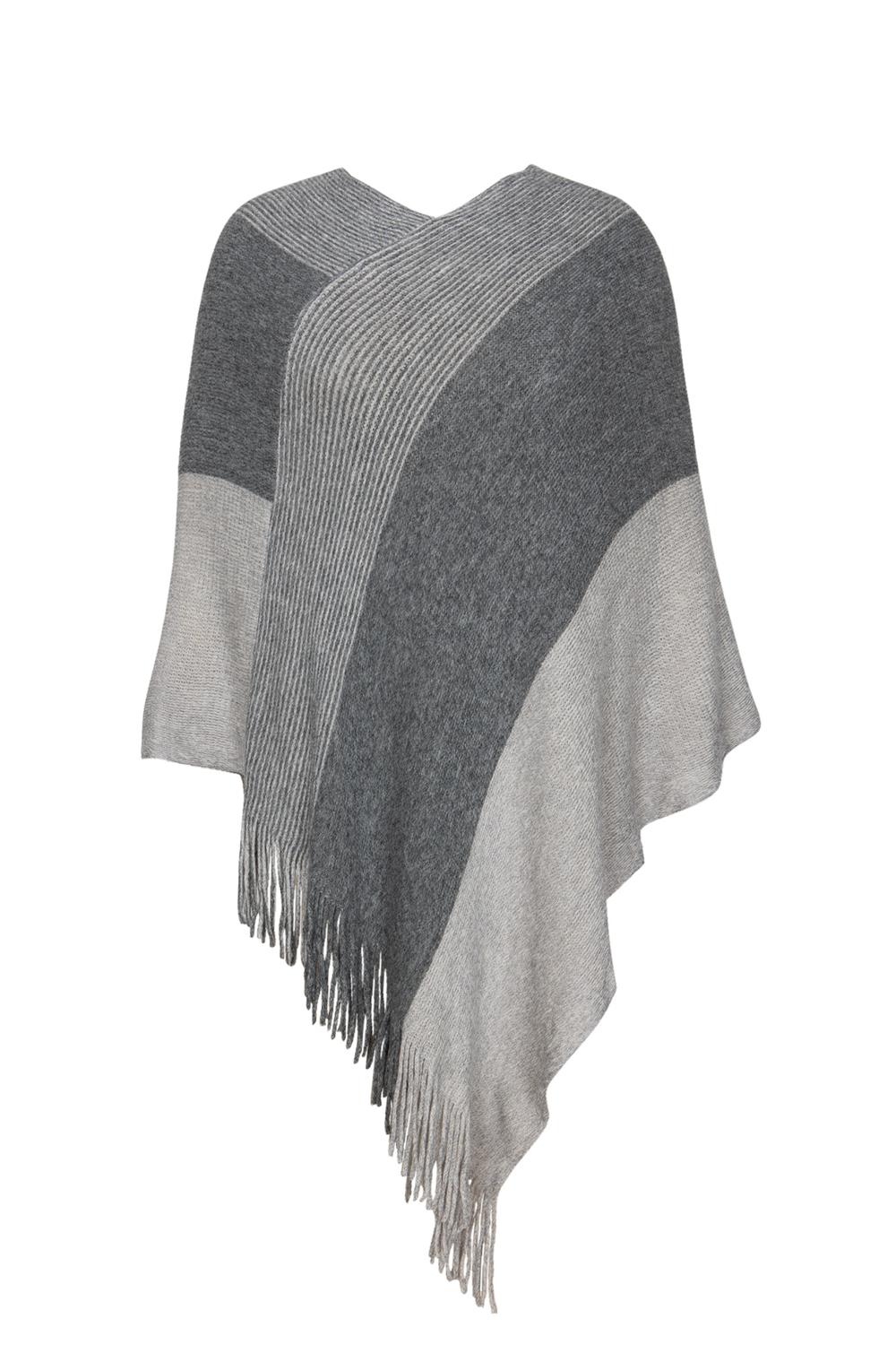 Capa tejida en combinación de colores, escote en ”V” y terminado con flecos 01-1018