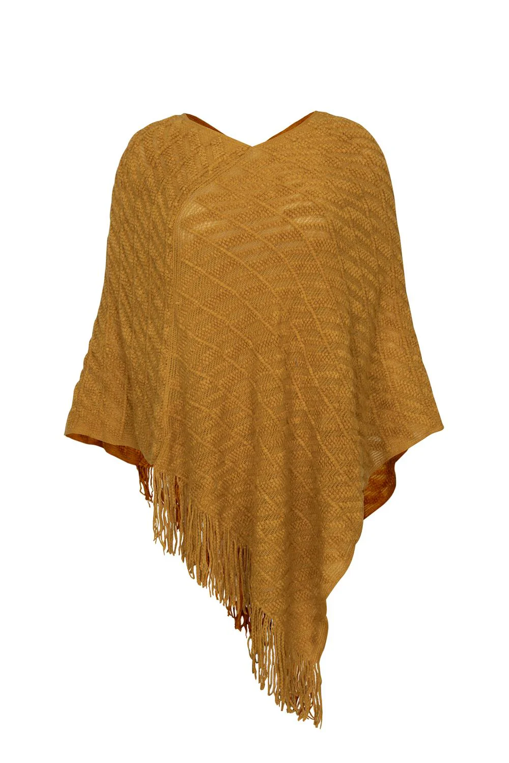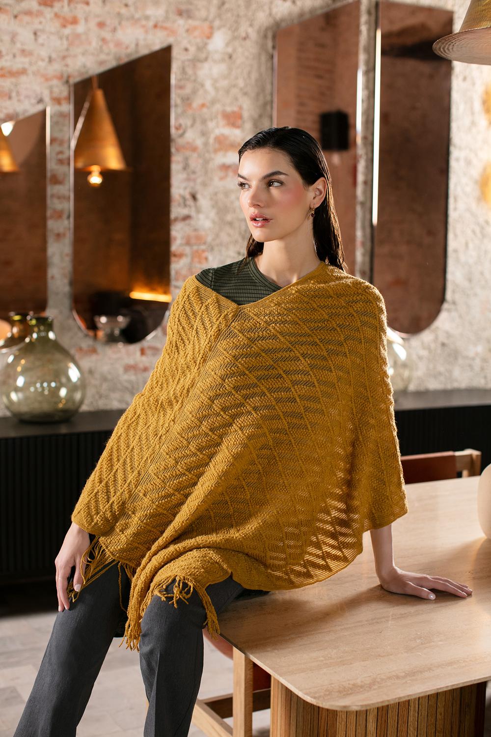 Capa con tejido decorativo, escote en «V» y terminación en flecos 01-1020
