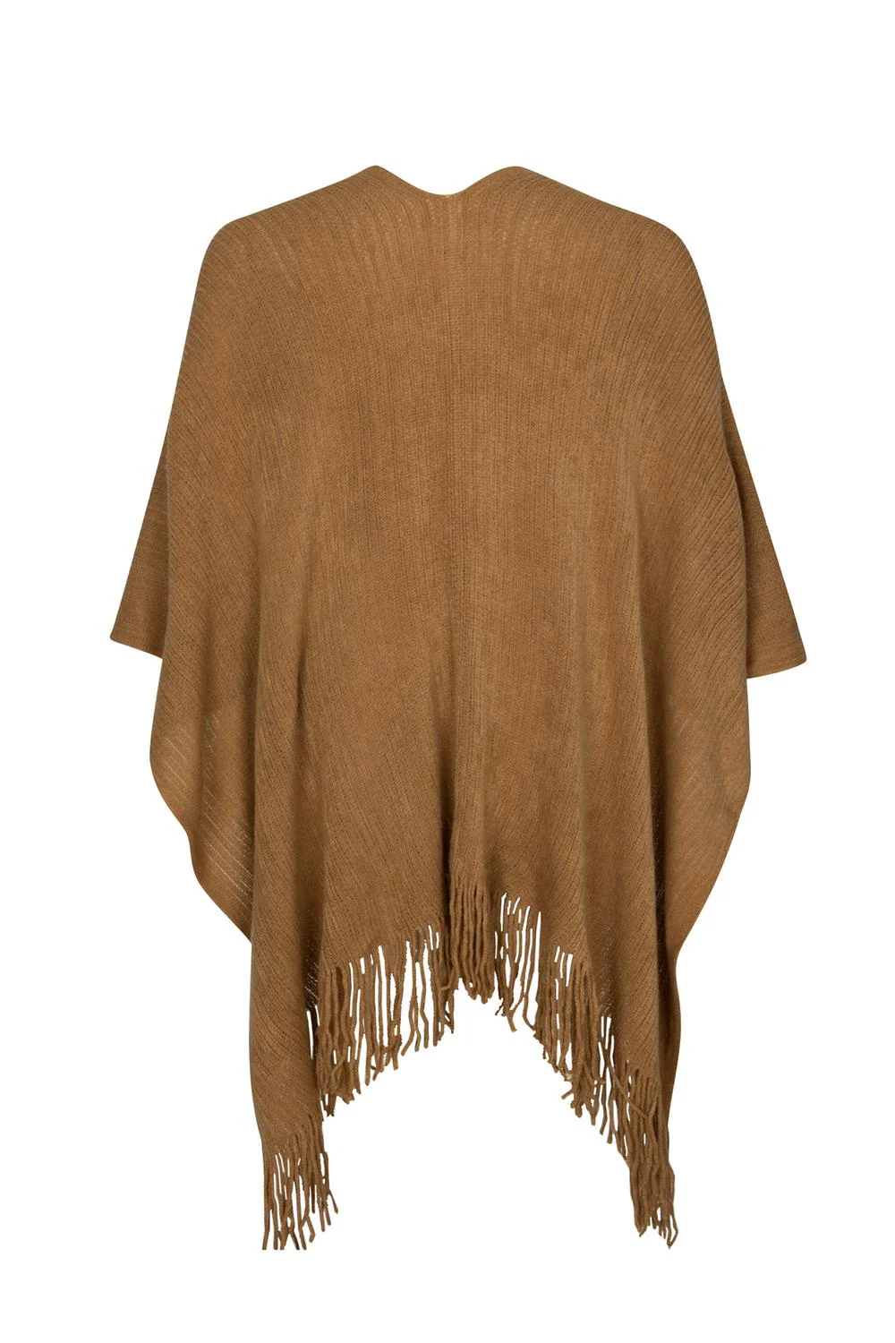 • Capa tipo poncho con textura suave y terminaciones en flecos