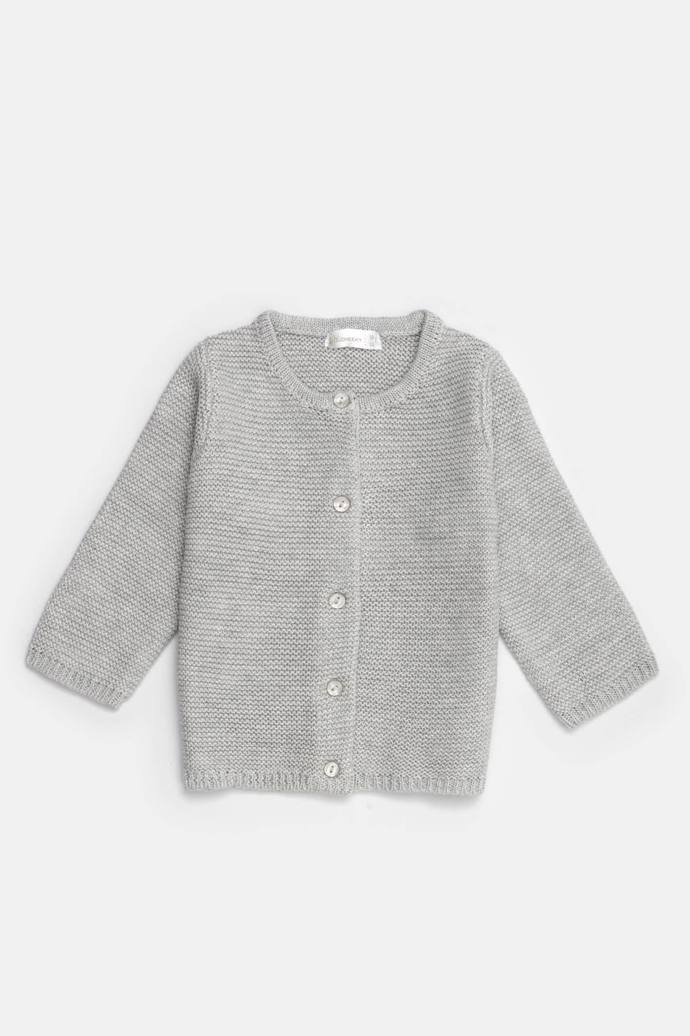 Nuestro cardigan Cozy presenta botones con logo y grifa de marca. Este tejido para bebes está hecho con 65% poliéster y 35% algodón.