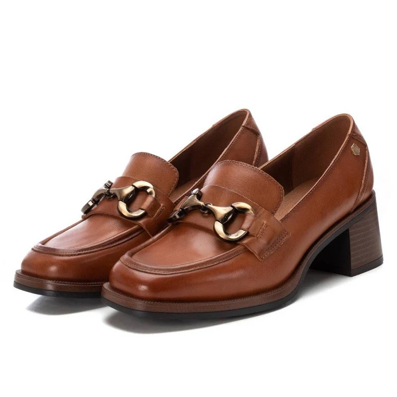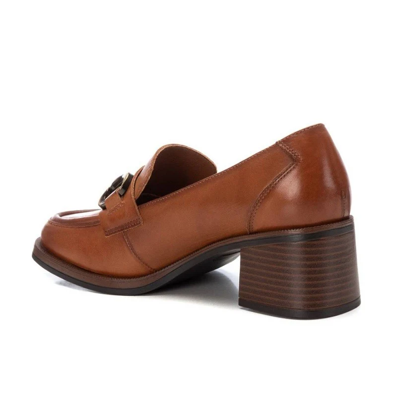 Mocasín de mujer, de la marca Carmela. Fabricado en piel de alta calidad. Antifaz en el frente con hebilla metálica decorativa