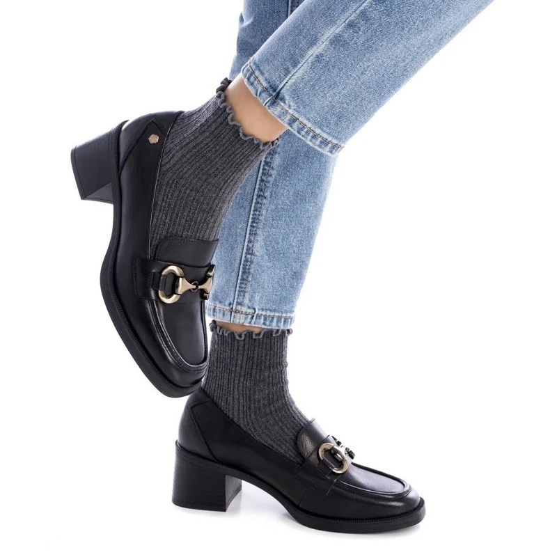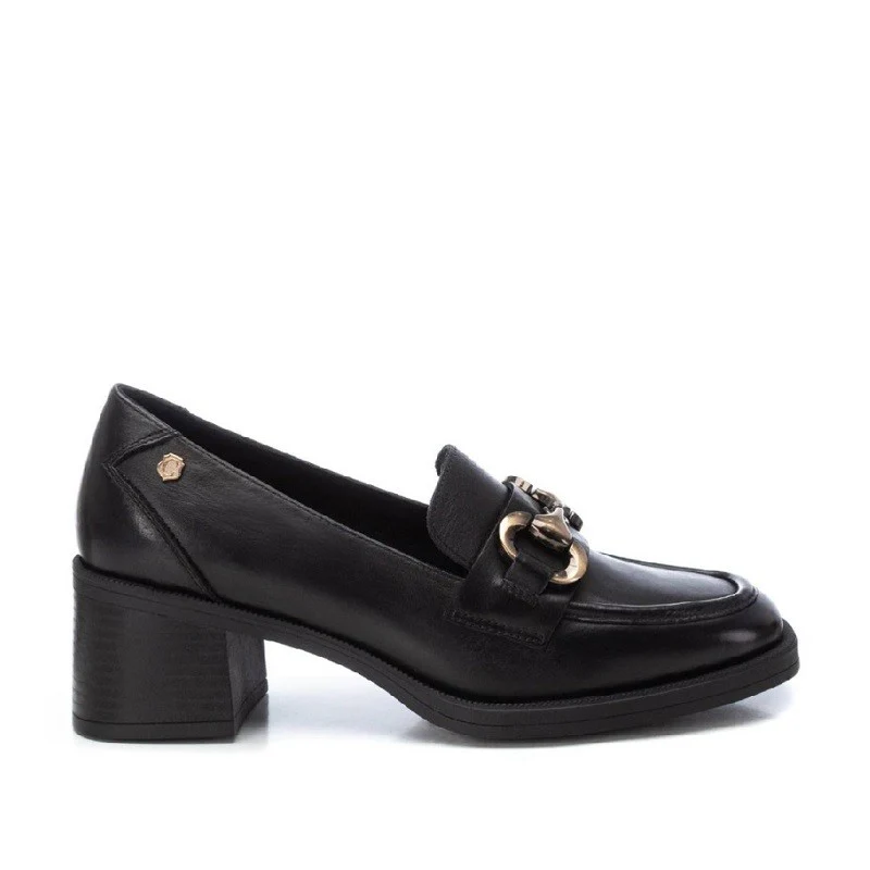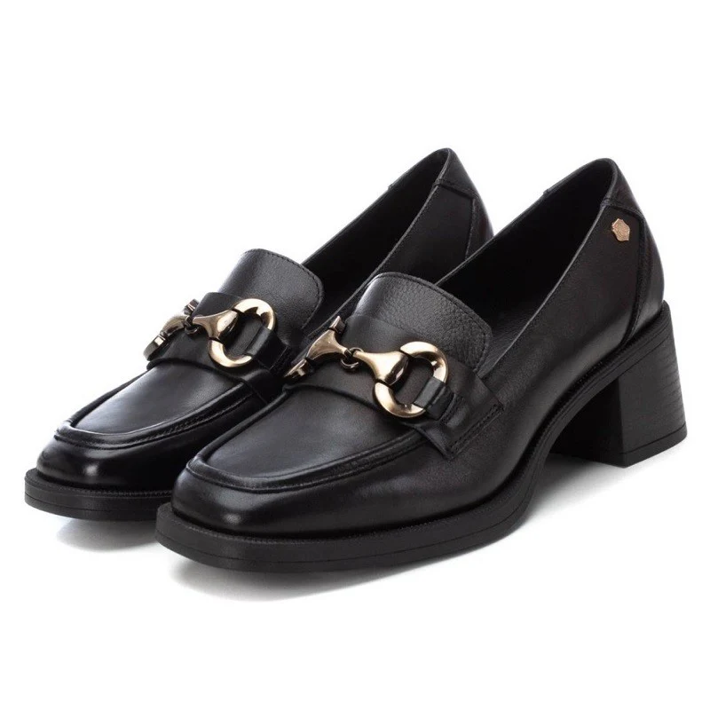Mocasín de mujer, de la marca Carmela. Fabricado en piel de alta calidad. Antifaz en el frente con hebilla metálica decorativa