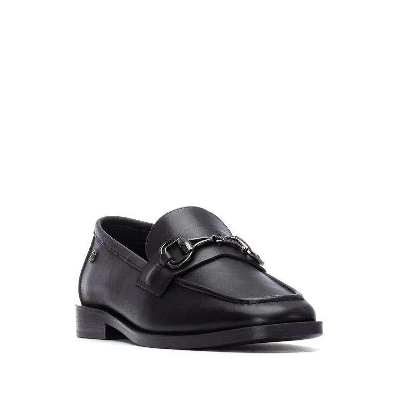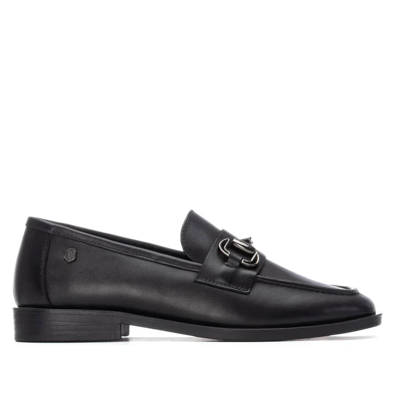 Este zapato de mujer Carmela combina elegancia y funcionalidad. Fabricado en ecopiel negra, presenta un antifaz frontal adornado con una delicada cadena decorativa que aporta un toque sofisticado. Su suela de goma antideslizante garantiza seguridad y estabilidad en cada paso, ideal para el uso diario sin sacrificar estilo.