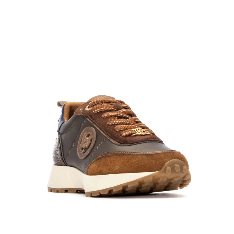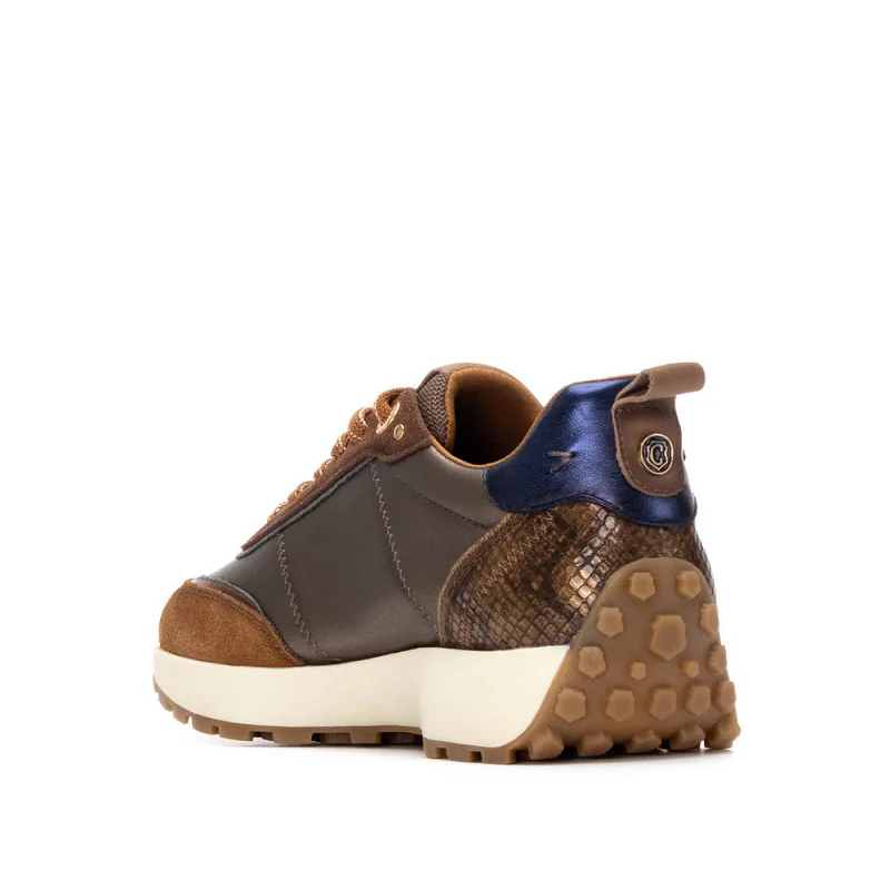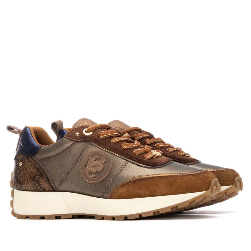 Zapatilla deportiva de mujer, de la marca Carmela. Fabricado en piel de alta calidad. Cordones ajustables. Tirador trasero para facilitar la puesta. Detalle trasero con material que imita a la piel con bonito grabado en coco. Suela antideslizante. Con plantilla extraíble.