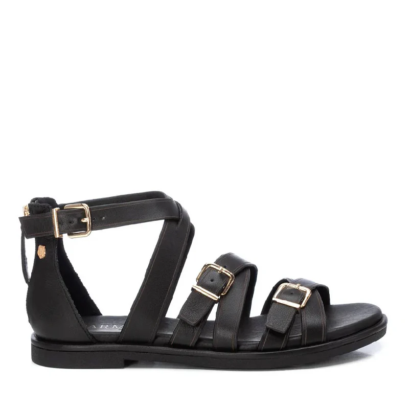 Sandalia de mujer, de la marca Carmela. Fabricada en piel de alta calidad. Modelo estilo romana con hebillas para un ajuste perfecto en todo el pie. Cierre mediante cremallera trasera. Suela de goma antideslizante.