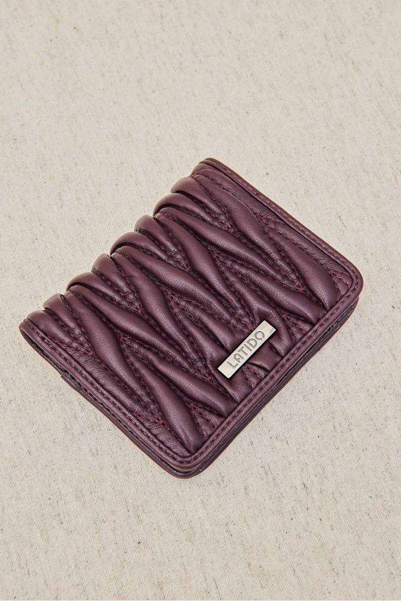 Un diseño compacto con textura acolchada y detalles en relieve que elevan su aspecto sin renunciar a la practicidad. Esta cartera con cierre de broche y compartimentos interiores de acabado en piel ecológica y la placa metálica con el logo aportan un toque sofisticado.