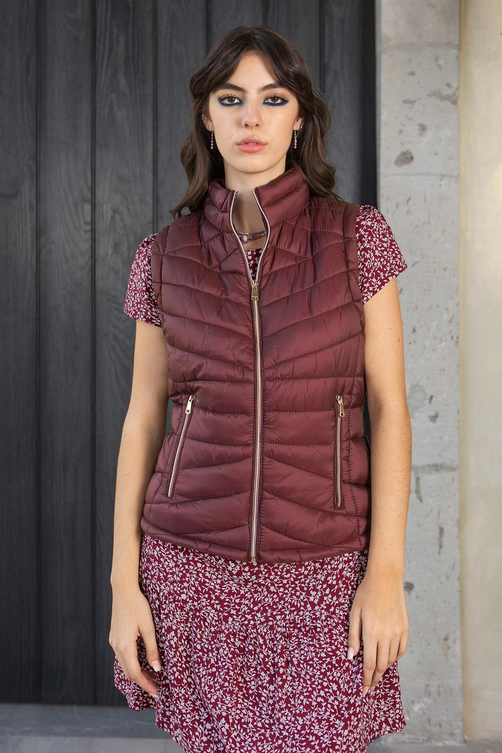 Chaleco capitonado con cuello alto, cierre frontal, bolsillos laterales e interior afelpado. 25-1364