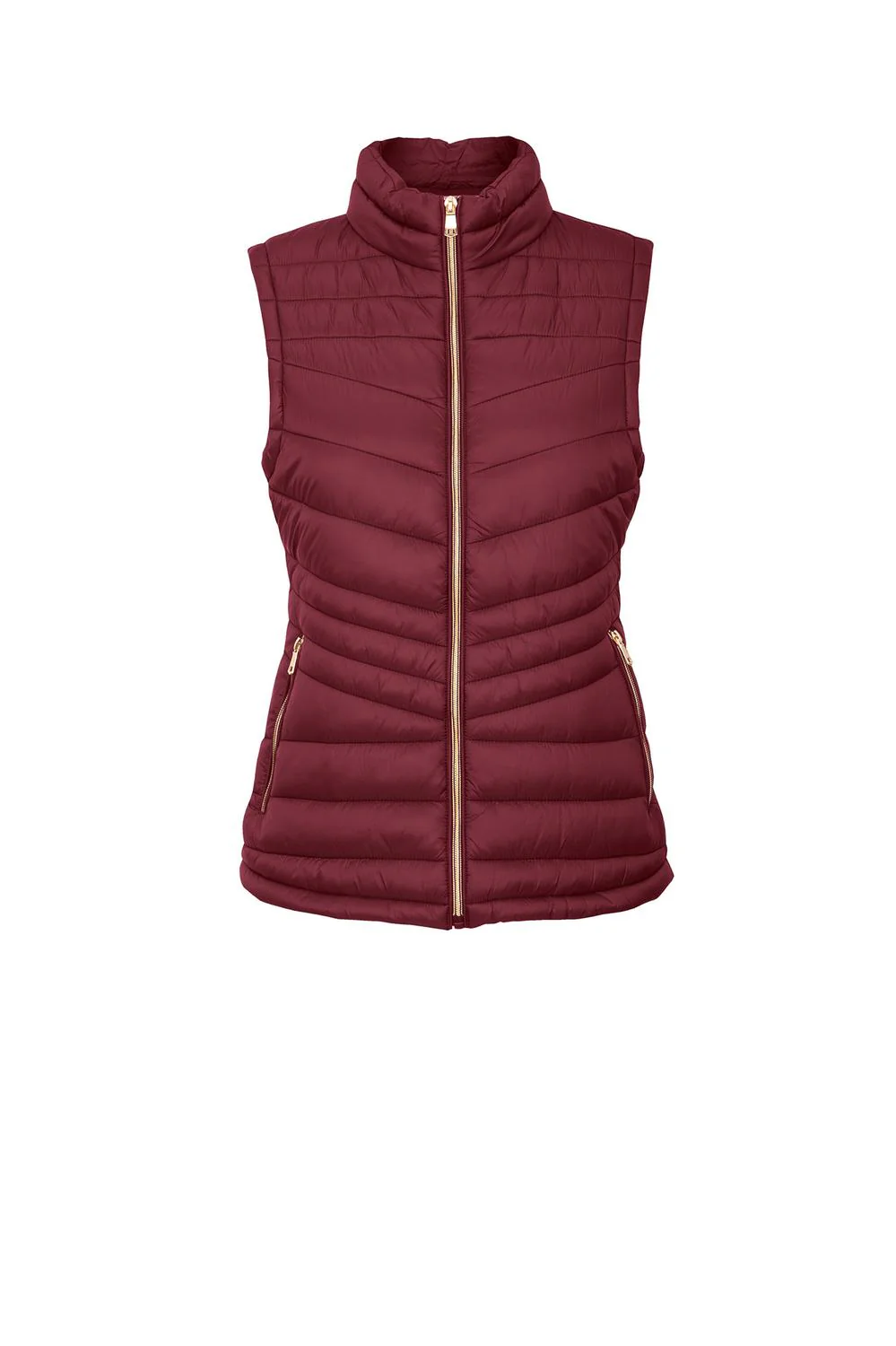 Chaleco capitonado con cuello alto, cierre frontal, bolsillos laterales, rib en costados e interior afelpado. 25-1372