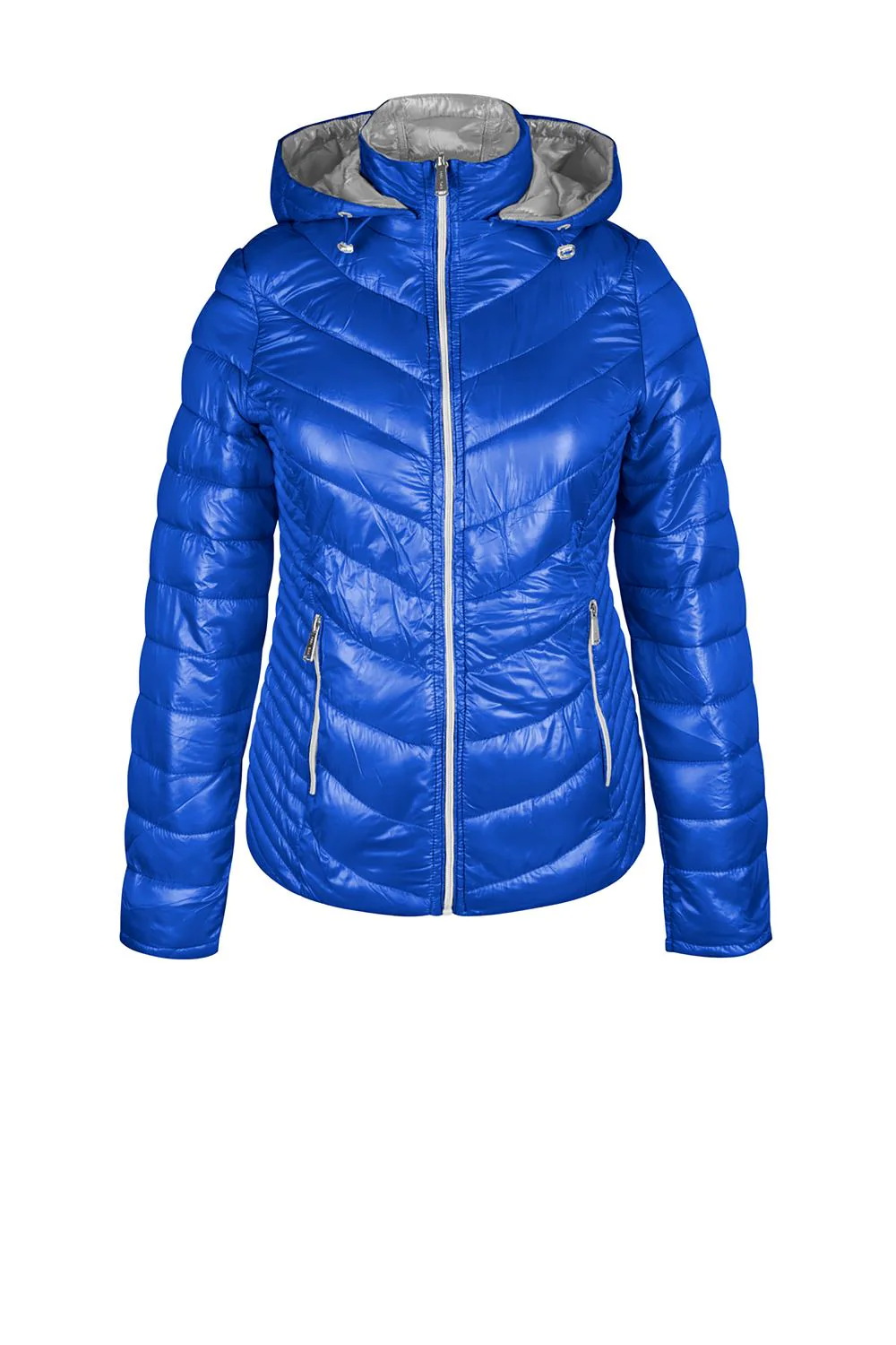 Chamarra capitonada doble vista con capucha ajustable y desmontable, bolsillos al frente por ambas vistas, manga larga,cierre frontal y plisado elástico en espalda. prod. # 01-1016