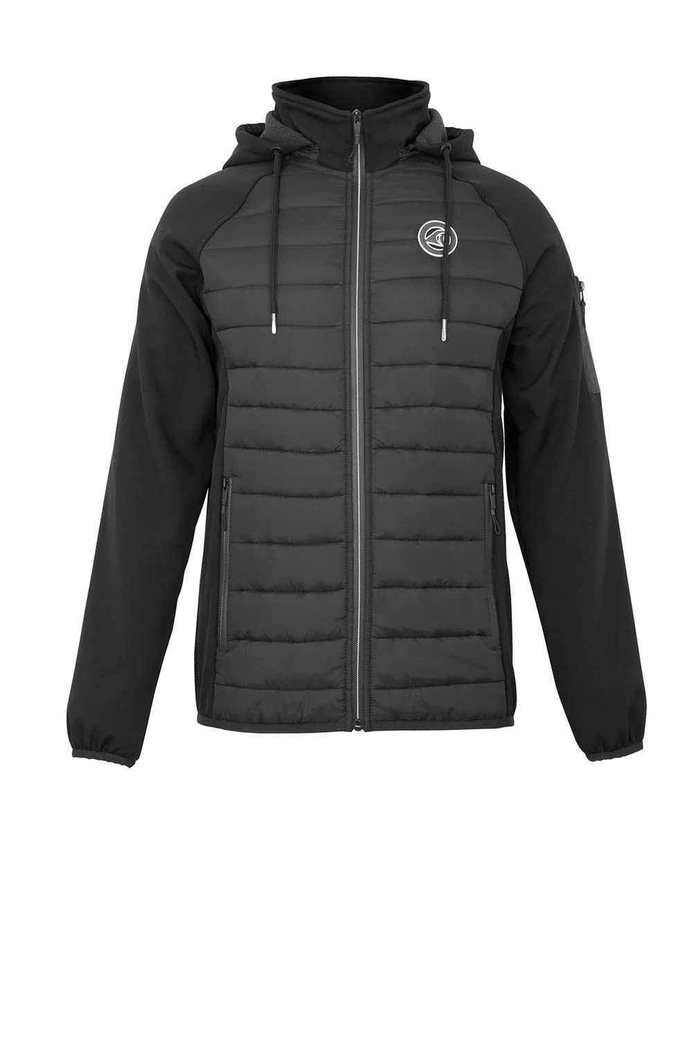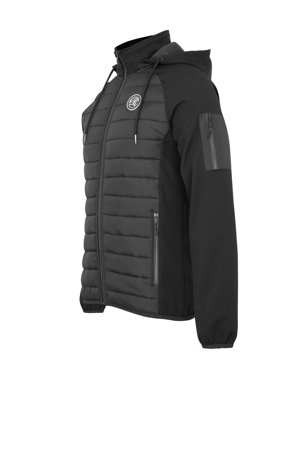 Chamarra con cuello alto, uso de diferentes materiales, capucha desmontable, delantero capitonado, detalles en contraste de color, múltiples bolsillos y ajustadores en puños 01-1401