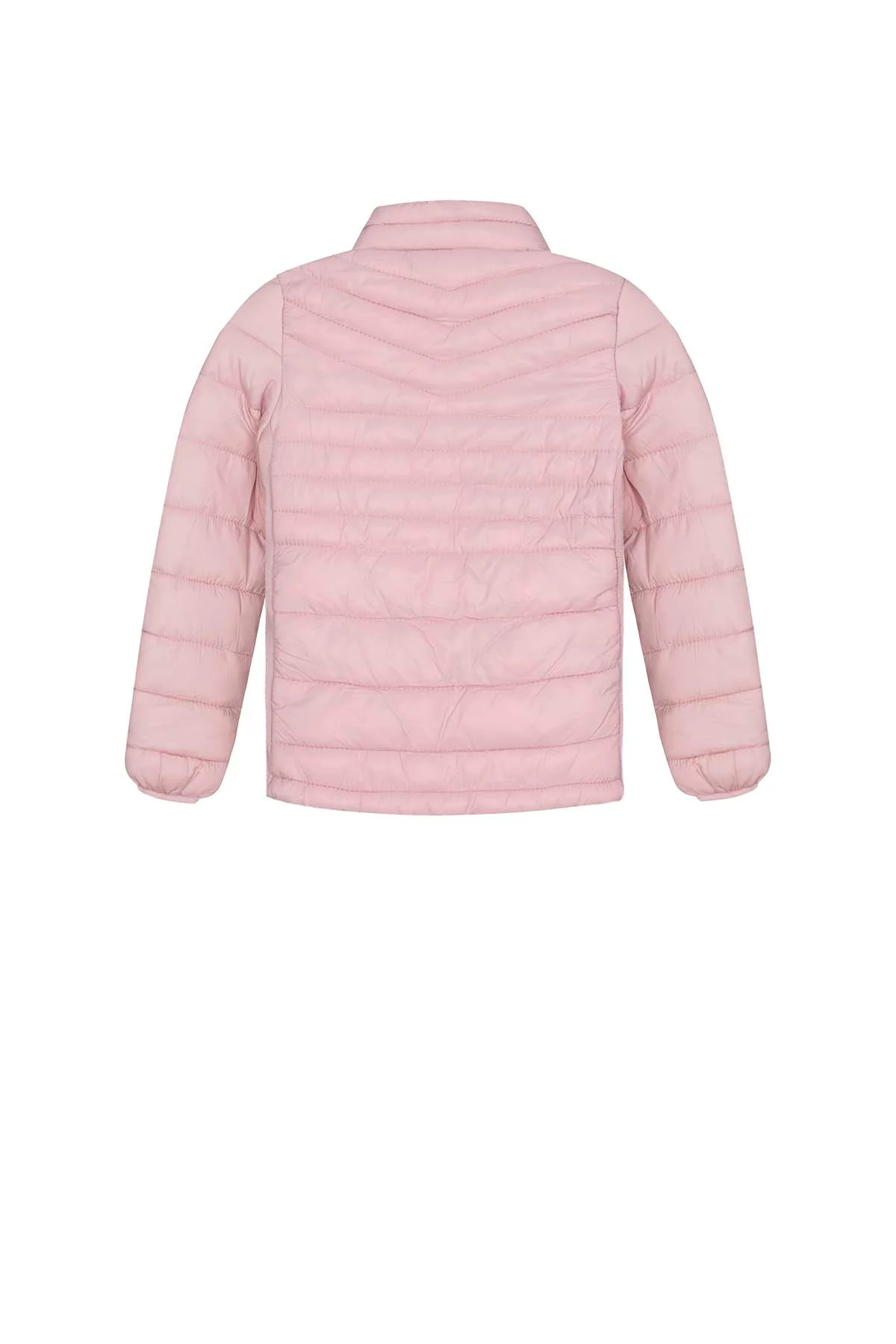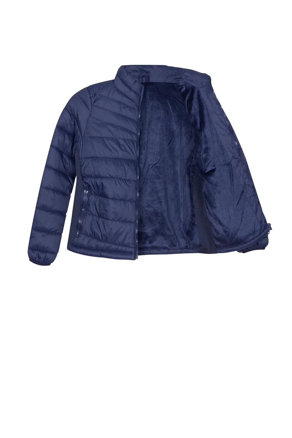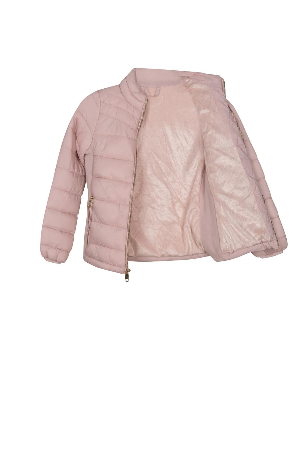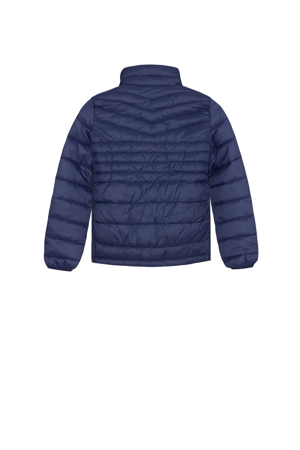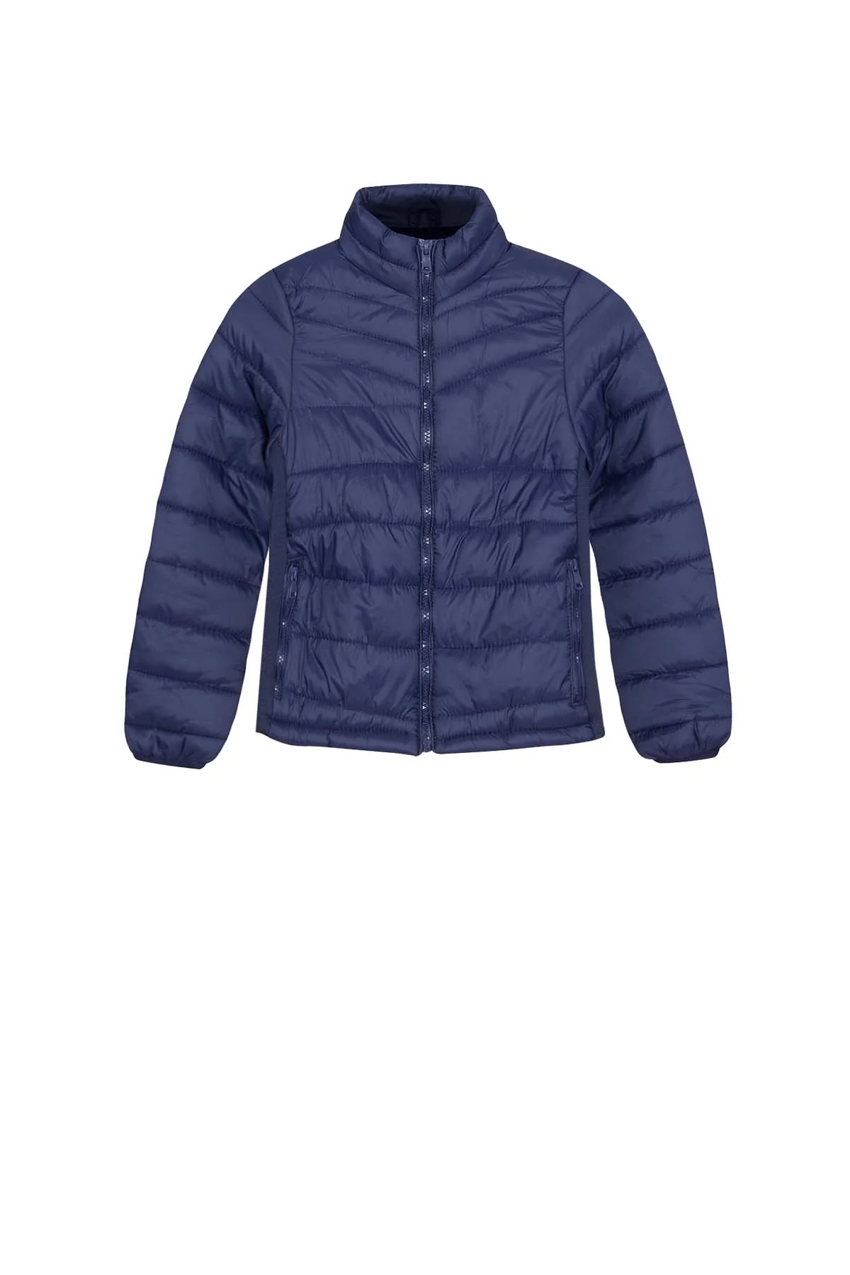 - Chamarra capitonada con cuello, cierres frontales, bolsillos laterales, rib en costados, mangas largas, tape elástico en puño e interior afelpado..