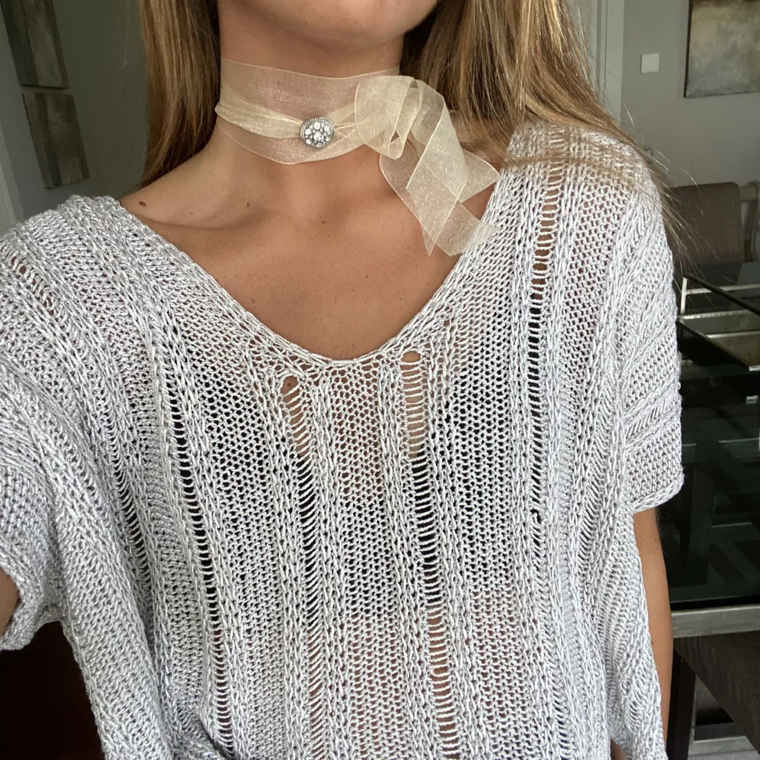 El Choker Laine Azul Cielo es una pieza delicada y elegante que aporta un toque de frescura a tu estilo. Su suave color azul cielo es perfecto para añadir un detalle sutil y sofisticado a cualquier look.