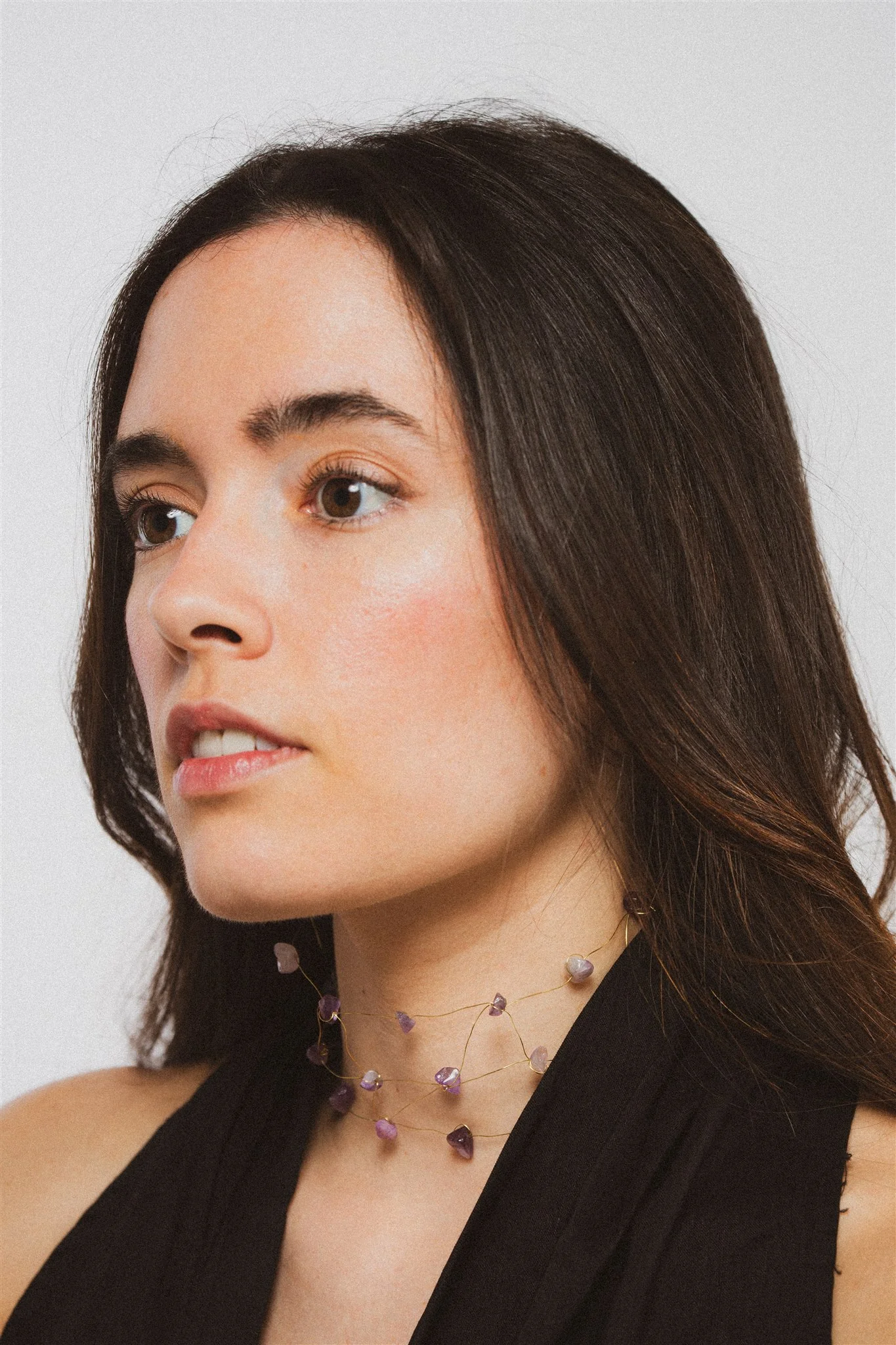 El Choker Laine Morado es una pieza moderna y versátil, perfecta para añadir un toque sutil de color a tu look. Su diseño en colores suaves y luminosos lo convierte en un accesorio ideal para cualquier ocasión.
