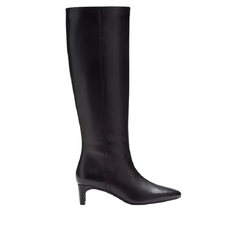 Descubre la elegancia sin compromisos con las botas Edina Tall. Elaboradas en cuero negro de primera calidad, estas botas altas ofrecen un estilo sofisticado gracias a su puntera astillada y detalles de costura que reflejan un acabado impecable. El tacón bajo proporciona la altura justa para alargar tu figura manteniendo la estabilidad en cada paso. Los refuerzos elásticos ocultos se adaptan perfectamente a tu pie, mientras que la plantilla Contour Cushion amortigua el impacto del movimiento durante todo el día. La cremallera lateral discreta facilita el calzado. Versátiles y cómodas, son el complemento perfecto que transformará cualquier outfit, de mañana a noche.