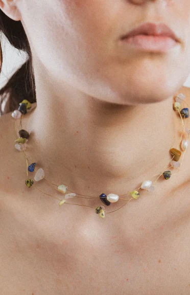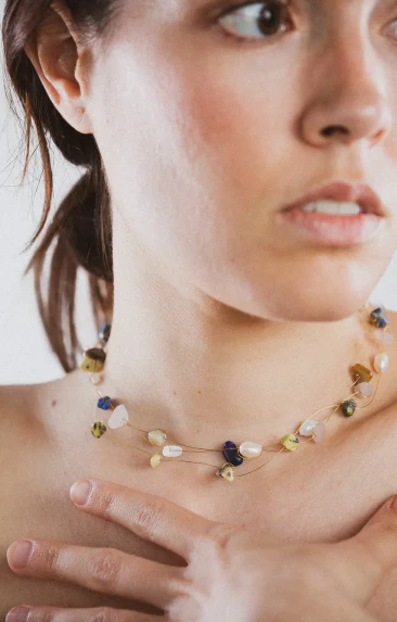 El Collar corto es una pieza moderna y versátil, perfecta para añadir un toque sutil de color a tu look. Su diseño en colores suaves y luminosos lo convierte en un accesorio ideal para cualquier ocasión.