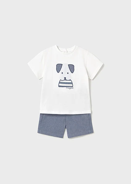 ¡Padrisimo y vestidor conjunto de camiseta con sus bermudsa a juego! ¡Un look muy versátil pensado para cualquier ocasion! Camiseta de manga corta, dibujo bordado, pequeño cierre por atras de botones a presion para facilitar la puesta de la prenda. Con sus bermudas a juego, tela tipo de lino comoda y fresca, con cordon en la cintura, detalle de bolsillos funcionales en la parte delantera.