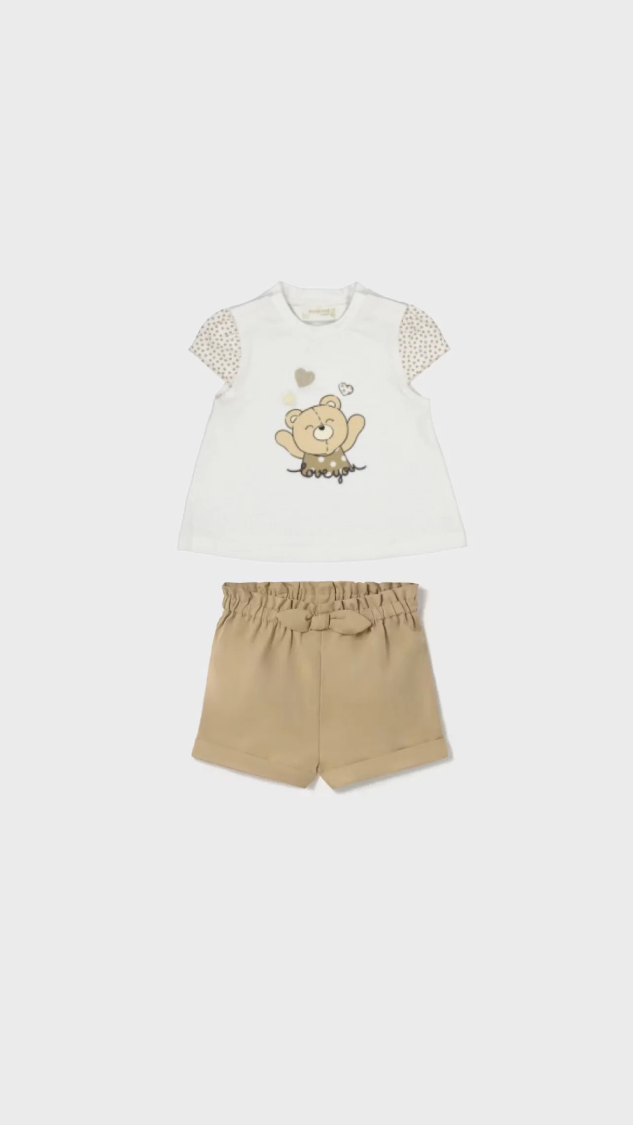 ¡Hermoso y fresco conjunto de blusa con su short a juego! Blusa de manga corta, cuello redondo, diseño estampado, cierre de botones a presion por el hombro y sus shorts a juego, detalle de nudo en el frente, con elastico en la cintura para mejor ajuste.