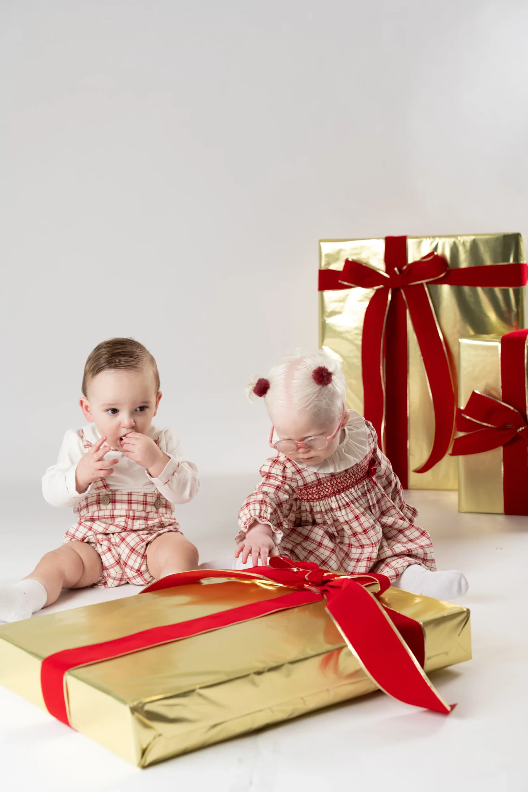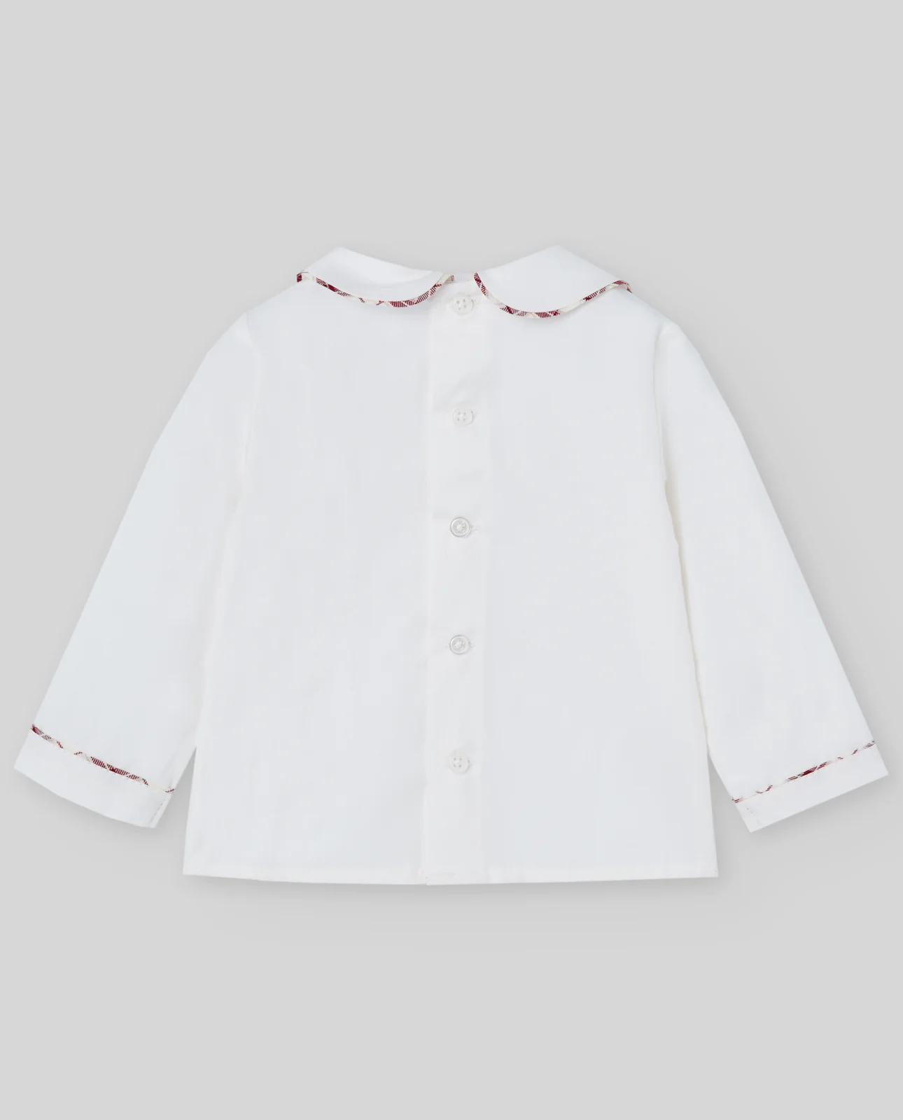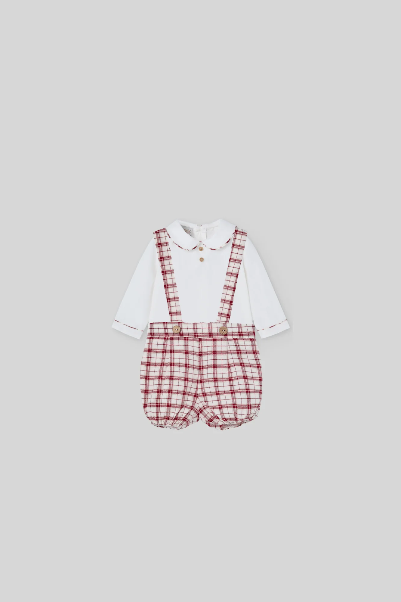 ¡Divino y tierno conjunto de camisa y shorts con tirantes a juego! ¡De colores navideños! Camisa de cuello camisero redondo, manga larga, botones decorativos frontales, cierre de botones por atras y con sus shorts a juego con tirantes ajustables, cruzados por detras, elastico en cintura y piernas para un mejor ajuste. Diseño de cuadros.