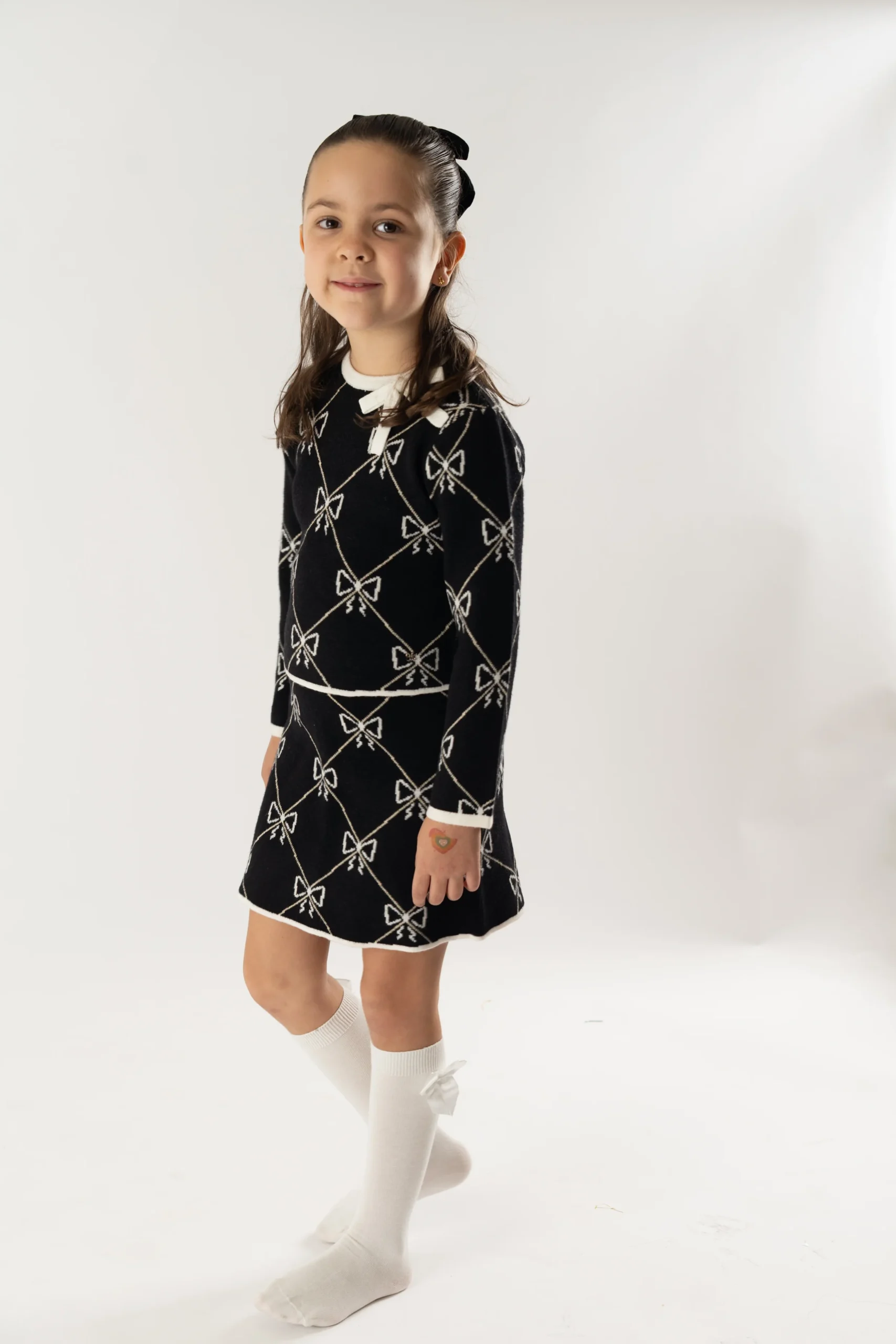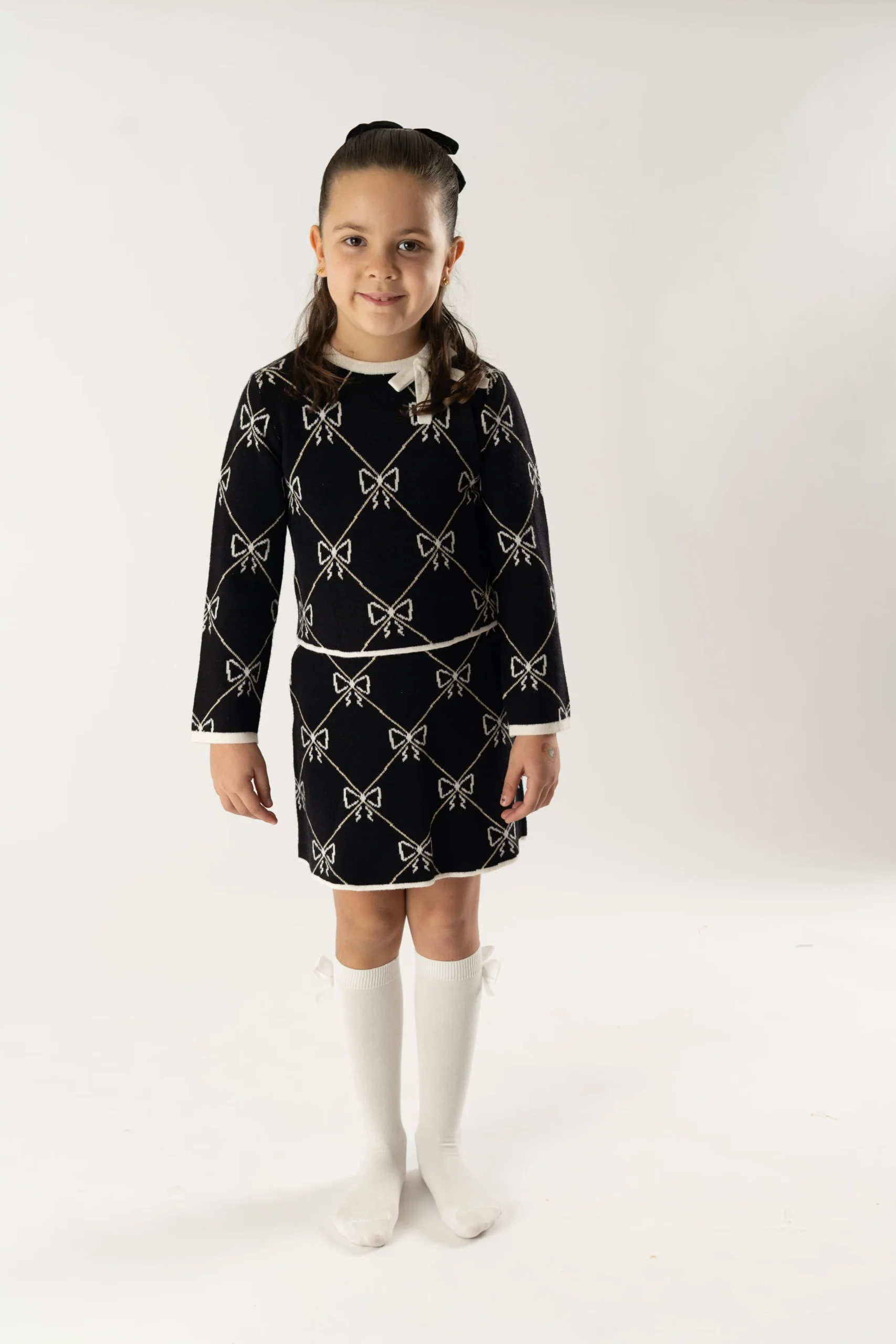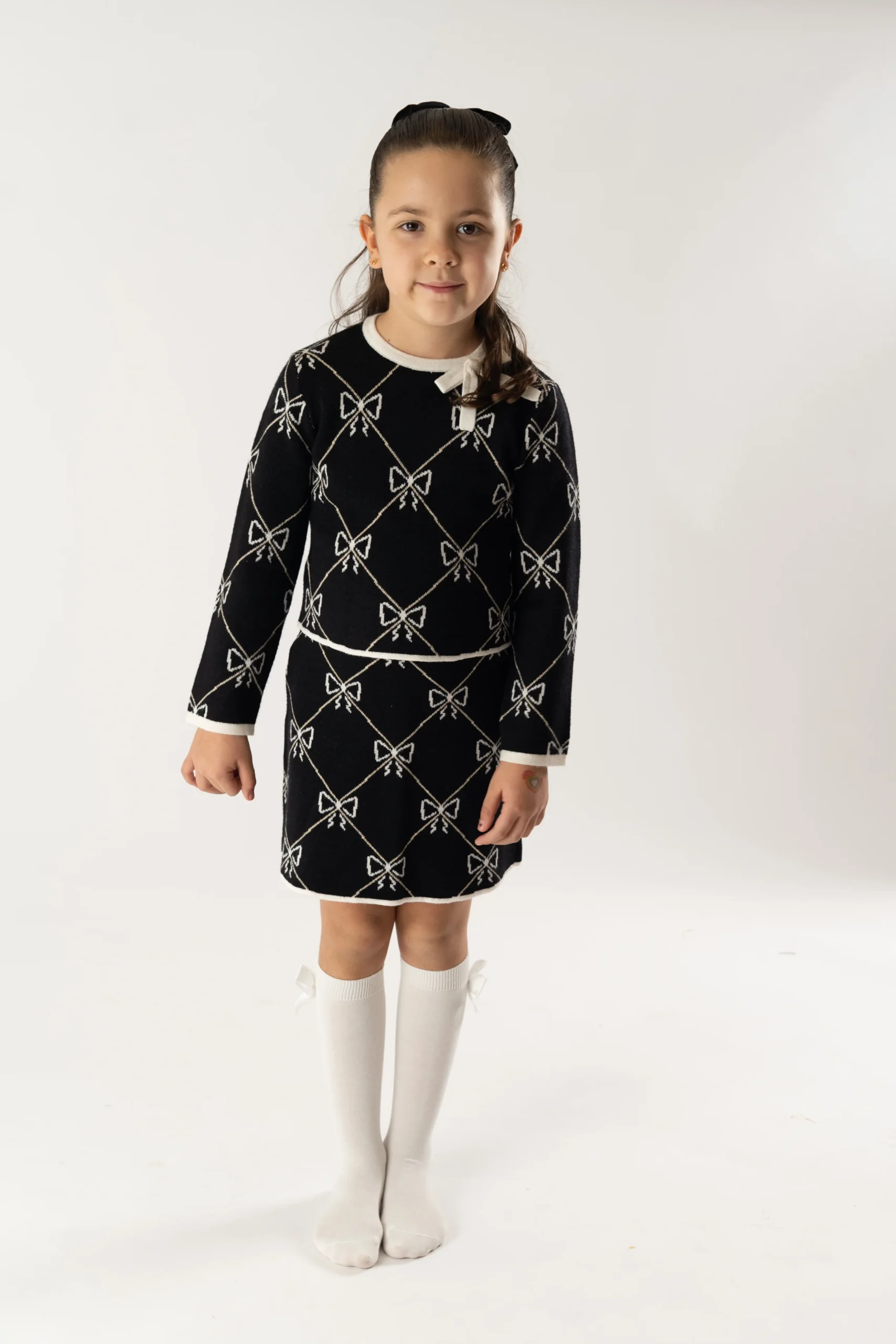 Sé el primero en valorar “Conj. Falda tricot jacquard lazos negro”