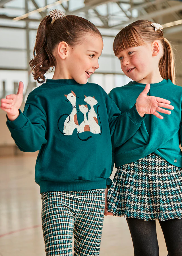 ¡Padrisimo conjunto de sudadera con leggings de estampado a juego! Sudadera de manga larga, cuello redondo y dibujo bordado con textura por el frente. Con sus leggings de estampado a juego y elástico en la cintura para un mejor ajuste.