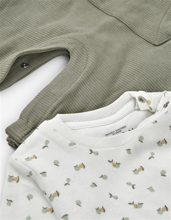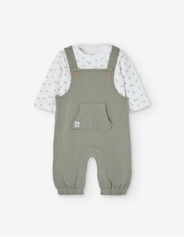 ¡Hermoso conjunto de overol y camiseta a juego! Camiseta de estampado manga larga, cuello redondo, cierre con botones por el hombro para facilitar su puesta y su overol a juego, tirantes con boton, bolsillo funcional en la parte delantera, elastico en tobillos para mayor ajuste.