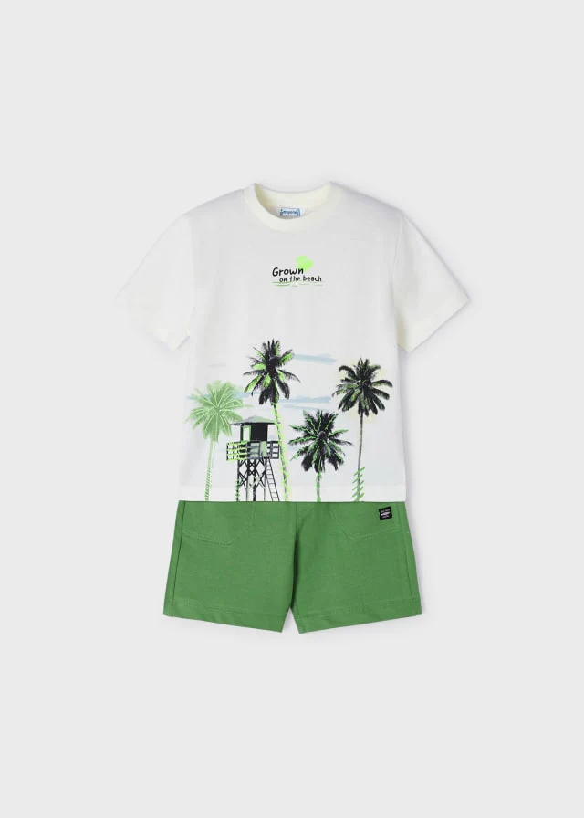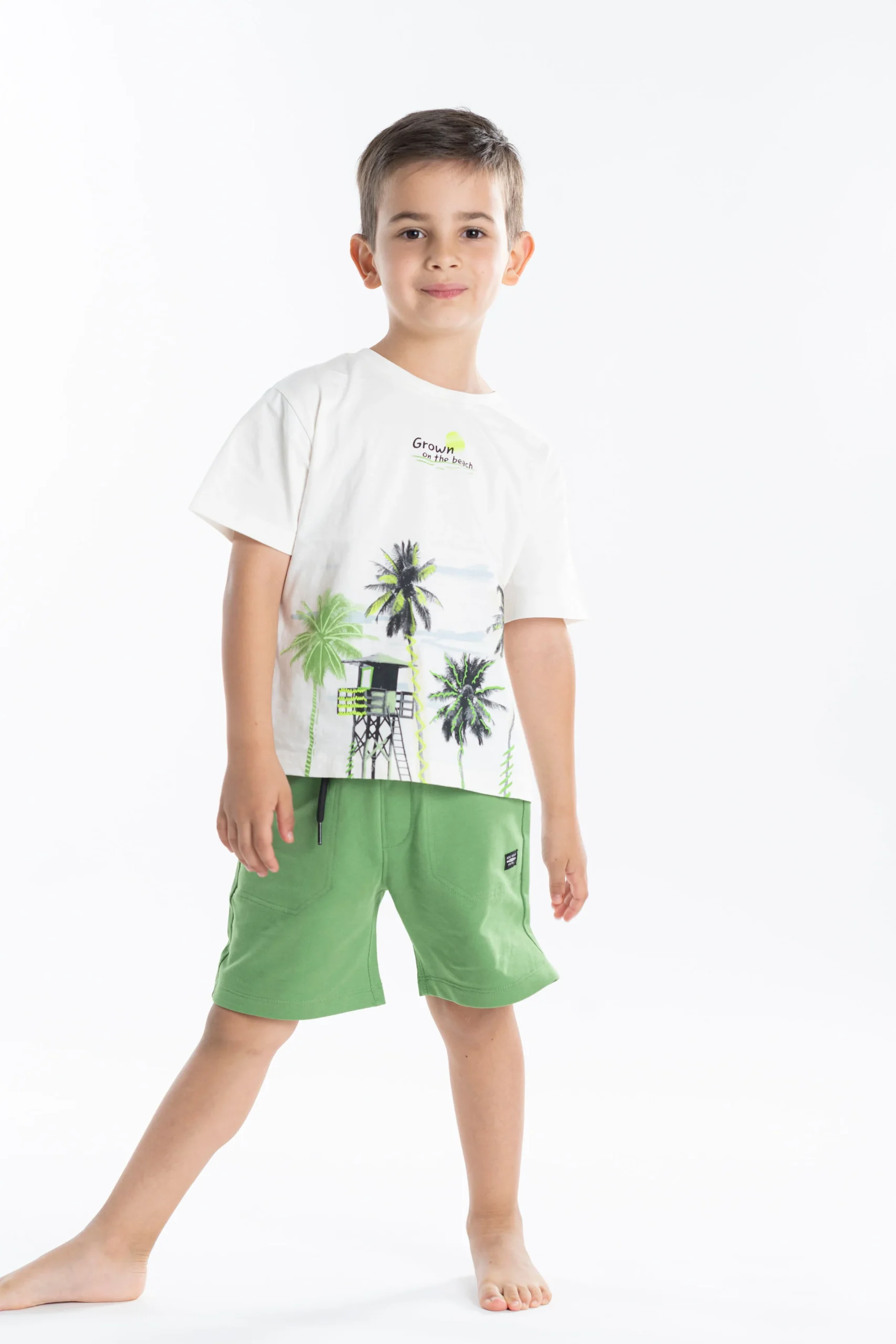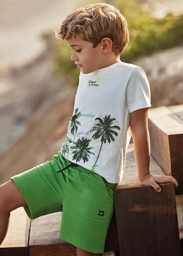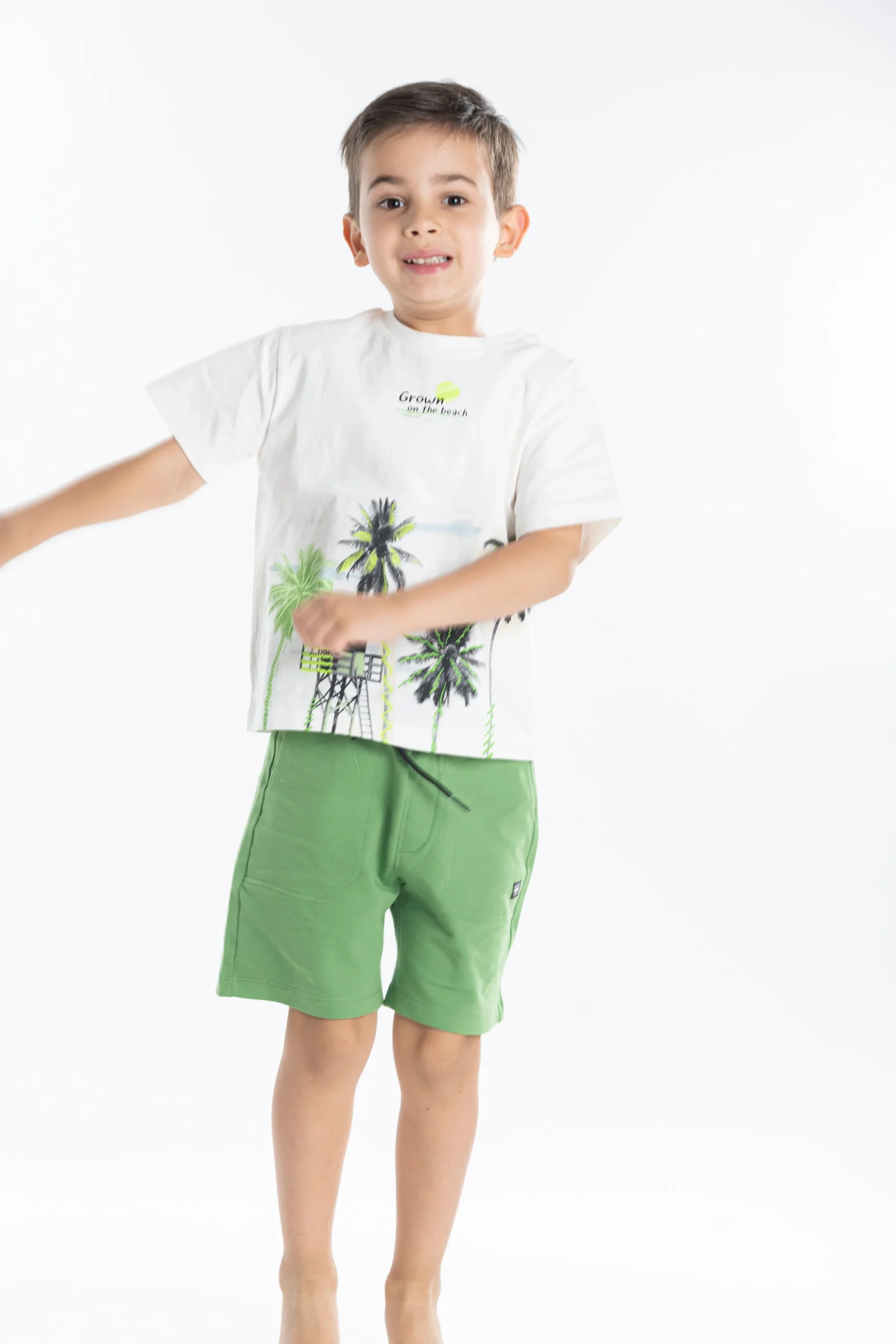 ¡Padrisimo y comodo conjunto de playera con sus shorts a juego! ¡Los niños no querrán quitárselo! Playera de manga corta, cuello redondo, dibujo y letrero estampado con sus short a juego con cordon ajustable en la cintura para mayor ajuste y bolsillos laterales funcional.