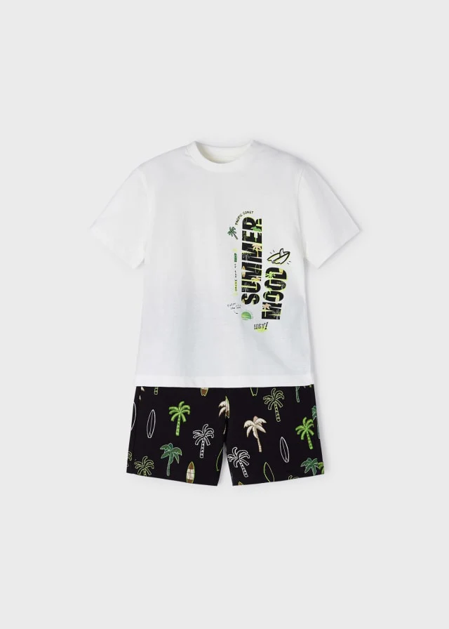 ¡Padrisimo y comodo conjunto de playera con sus shorts a juego! ¡Los niños no querrán quitárselo! Playera de manga corta, cuello redondo, letrero estampado. Con sus short de estampado a juego, cordon ajustable en la cintura para mayor ajuste y bolsillos laterales funcional.