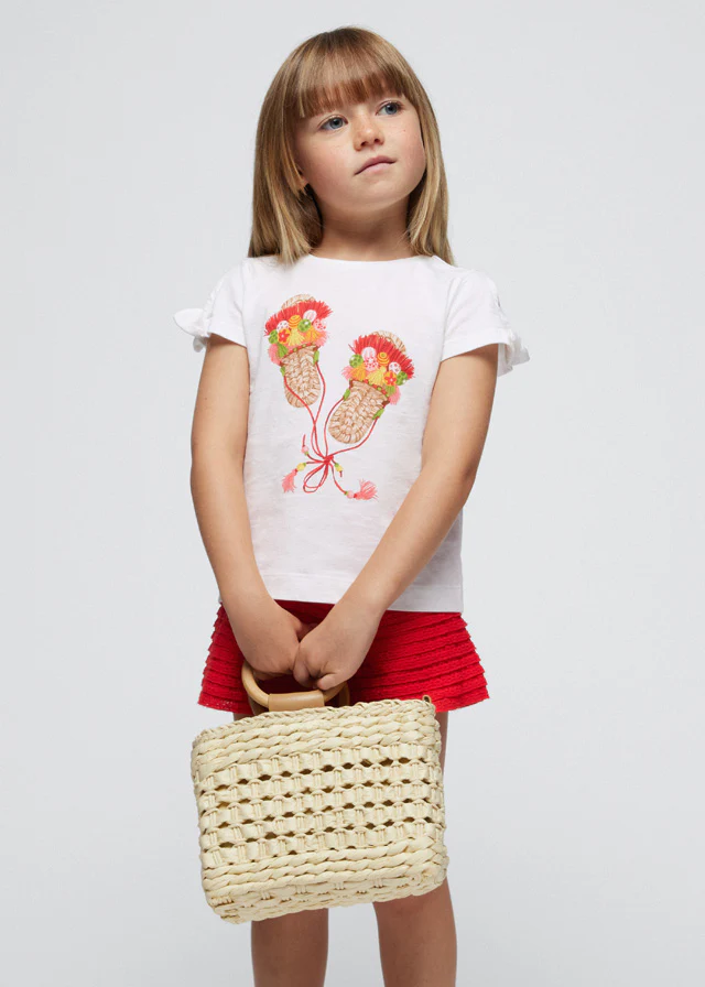 ¡Hermoso, comdo y fresco conjunto de blusita y short a juego! ¡Las niñas no querran quitarsela! Blusa de manga corta con cierre de lazo y pequeña abertura, cuello redondo, dibujo estampado con sus short a juego en color liso con detalle de encaje, elastico en la cintura para mayor ajuste.