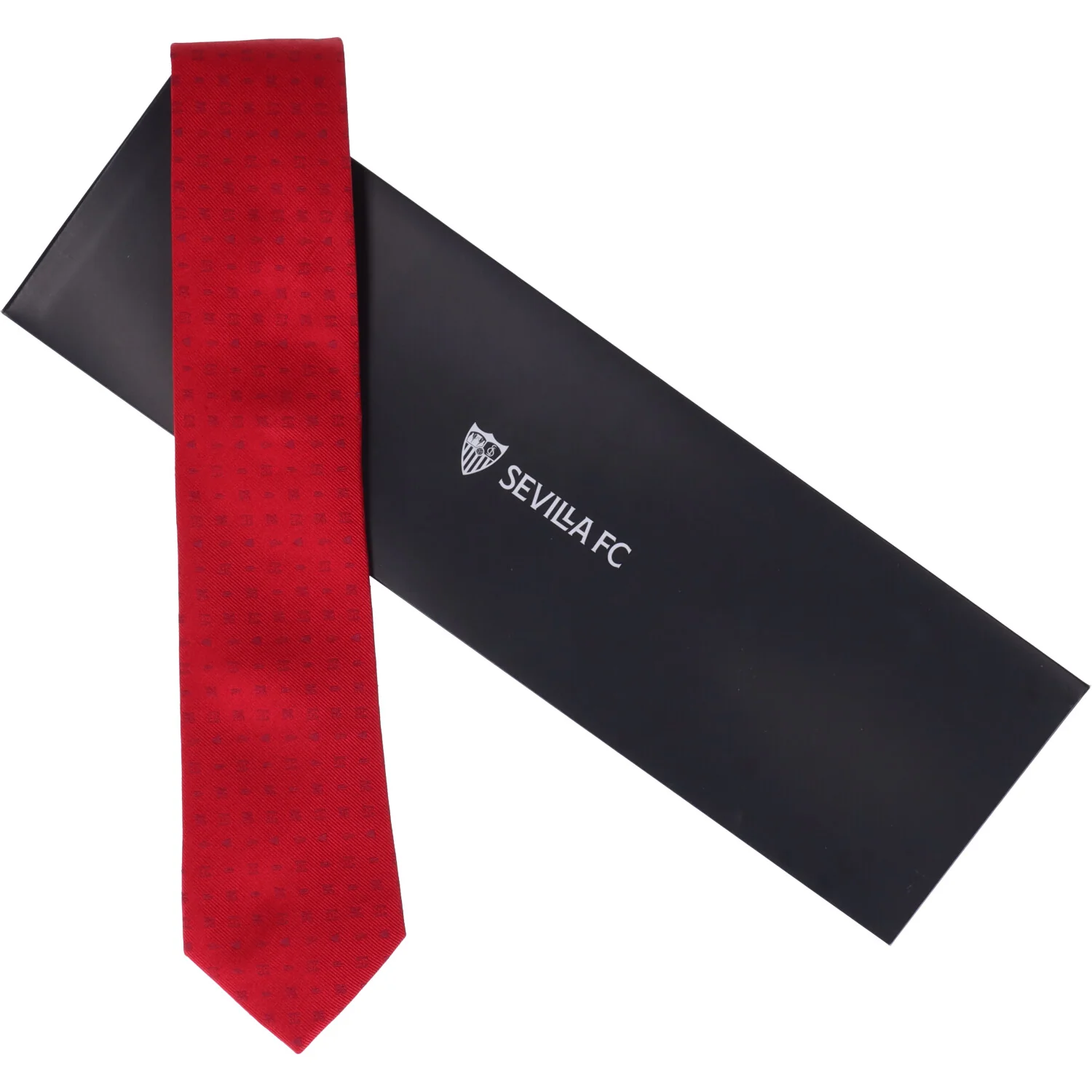 Añade un toque de autenticidad sevillista a tu estilo con nuestra corbata del Sevilla FC. Confeccionada con tejido de calidad tipo seda en color rojo, esta corbata presenta pequeños detalles de las típicas tramas y escudos del Sevilla FC bordados en el mismo color, creando un diseño único y distintivo.