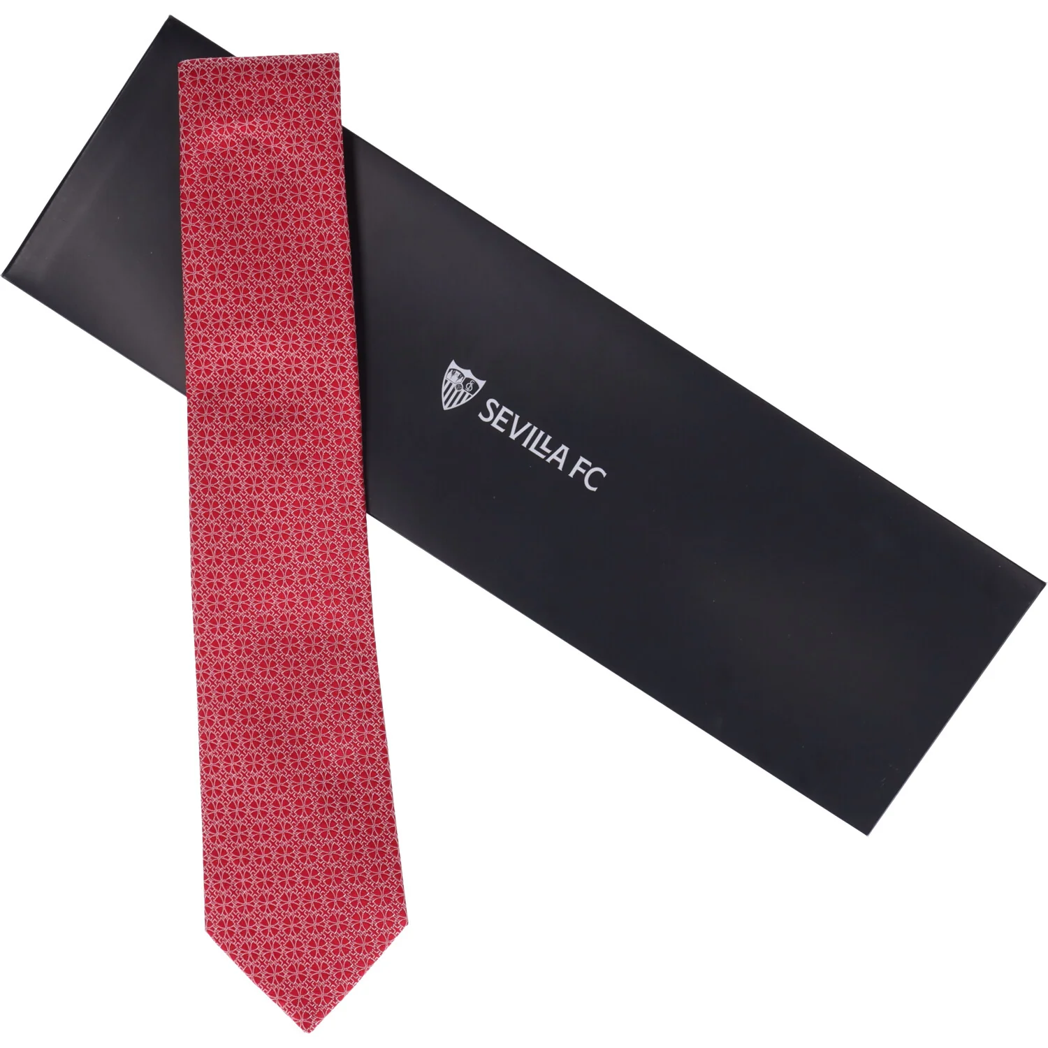 Esta corbata confeccionada con tejido de calidad tipo seda en rojo presenta detalles de escudos unidos que forman tréboles bordados en un sutil color blanco. Este diseño único y simbólico es perfecto para mostrar tu devoción por el club con estilo. El accesorio ideal para eventos o para añadir un toque distintivo a tu día a día, Disfruta de la elegancia y el orgullo sevillista en cada ocasión con esta corbata exclusiva. ¡Haz una declaración de pasión con cada nudo!