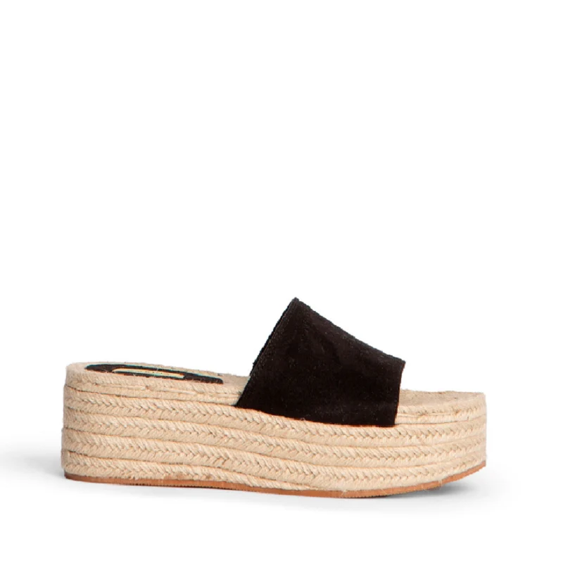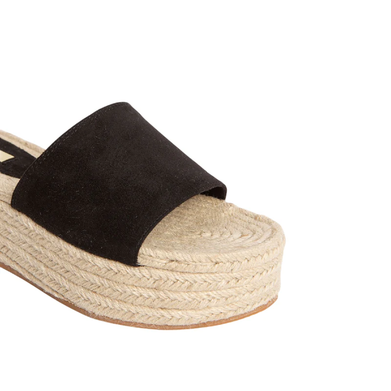 Esta sandalia de cuña presenta un diseño elegante con pala ancha en antelina que ofrece comodidad y sujeción. Su suela con efecto yute aporta un toque natural y un volumen que realza la silueta. La cuña de 6 cm proporciona una altura equilibrada, ideal para un uso prolongado sin sacrificar estabilidad ni estilo. Perfecta para complementar looks veraniegos con sofisticación y confort.