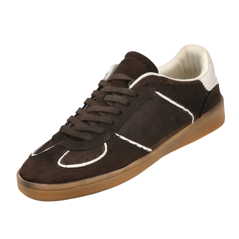 Las zapatillas Corina deportivo combinan un diseño clásico con detalles modernos para ofrecerte comodidad y estilo en cada paso. Su tono marrón oscuro sofisticado, junto con las costuras blancas y la suela beige de goma, crean un equilibrio perfecto entre elegancia y minimalismo. El interior acolchado y la plantilla blanca garantizan un ajuste cómodo, mientras que su silueta baja y corte ajustado las hace ideales para cualquier ocasión, desde un look casual hasta semi-formal. Eleva tu estilo con estas deportivas versátiles y de alta calidad.