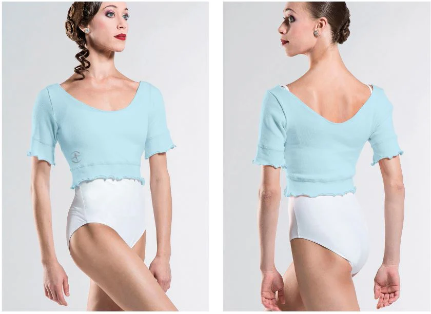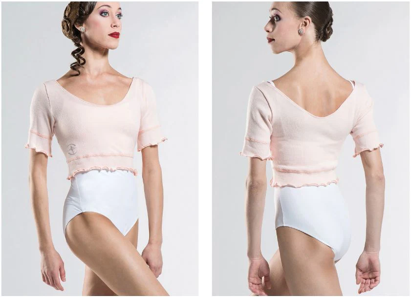 El modelo NAYA de Wear Moi es perfecto para clase de danza. Ideal para calentamiento. Elegante y fino. De manga corta con el escote redondo y detalle en las costuras. Camiseta de manga corta.