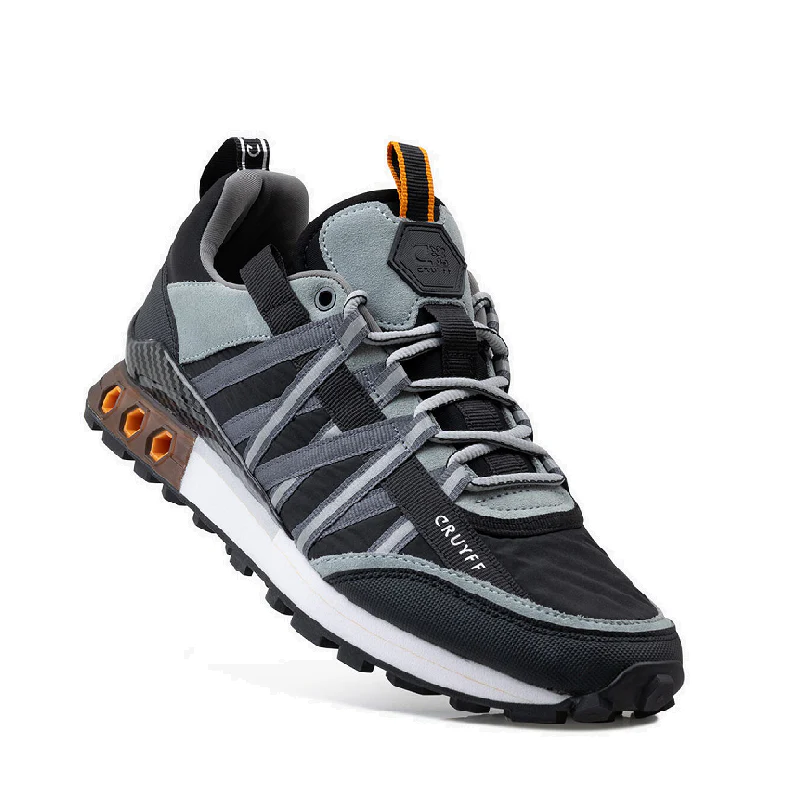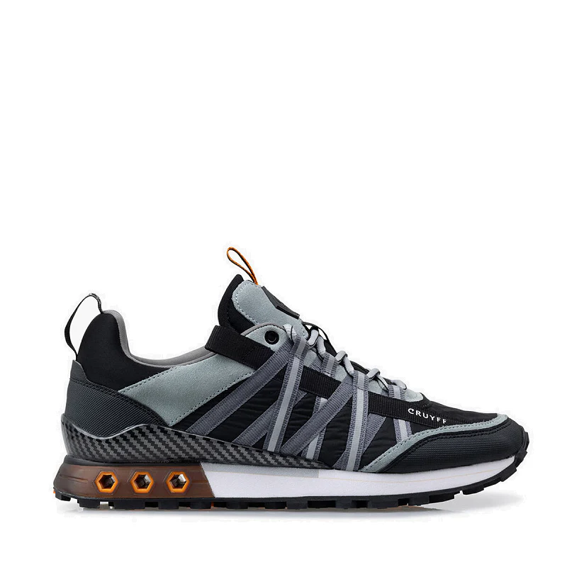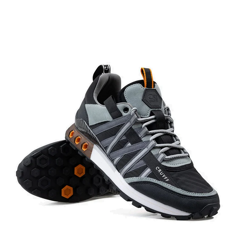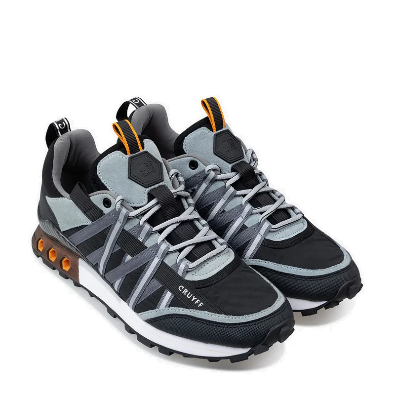 Sneakers de hombre de la marca Cruyff modelo Fearia Hex-Tech e color negro y gris con algún detalle en naranja. Su composición es de Nylon y Suede.
