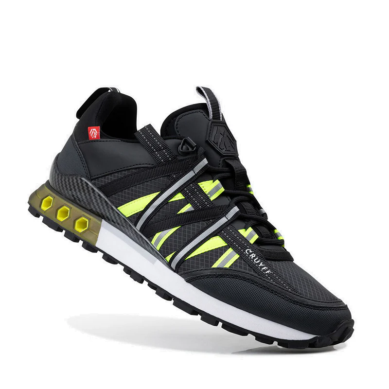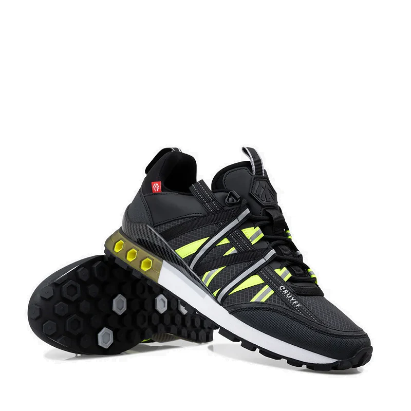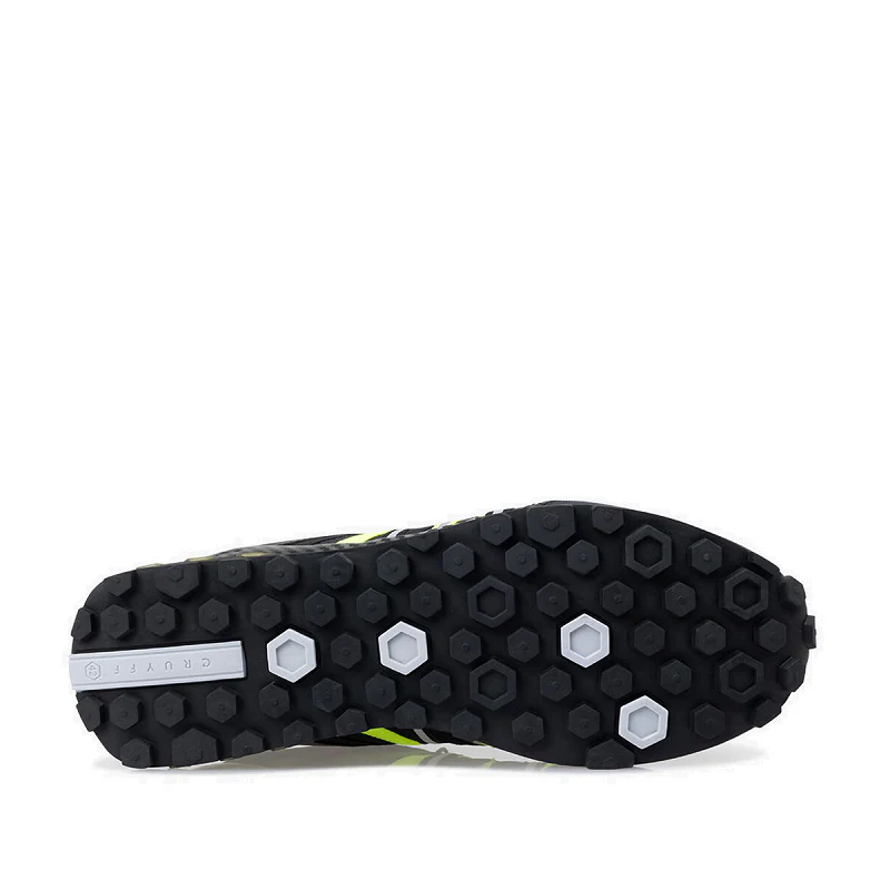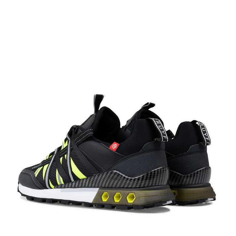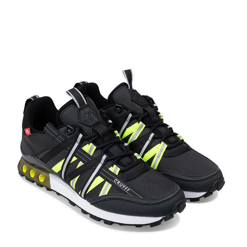 Sneakers de hombre de la marca Cruyff modelo Fearia Hex-Tech and Montserrat en color negro y amarillo fluorescente. Su composición es de Reflect Ripstop and Diamond.
