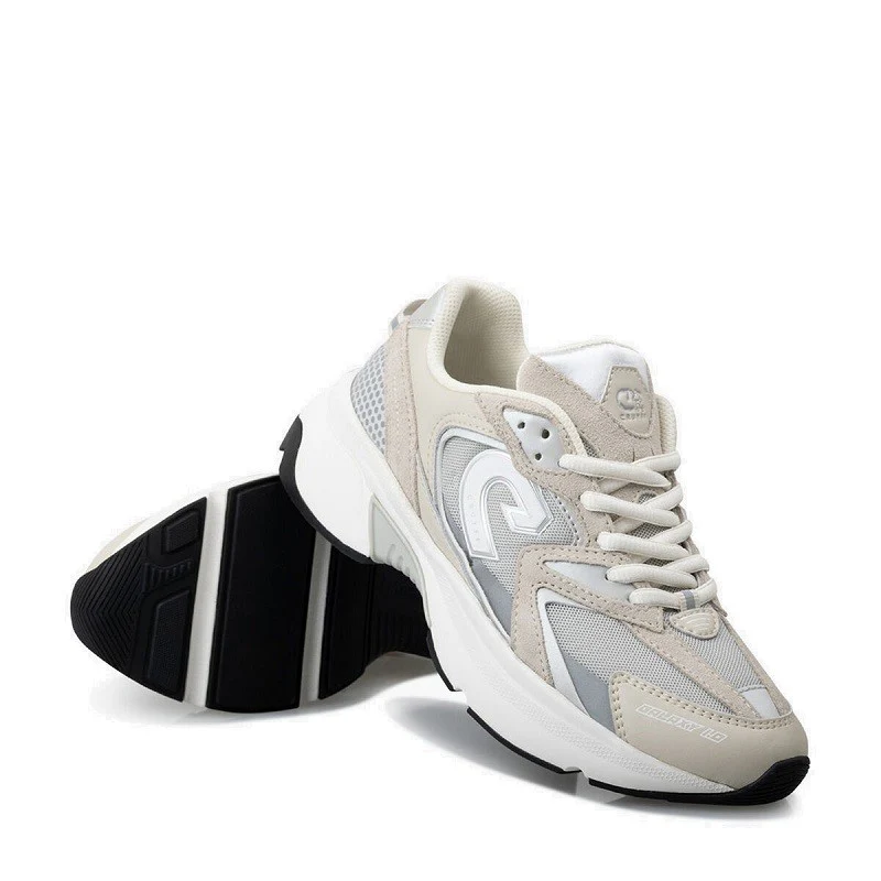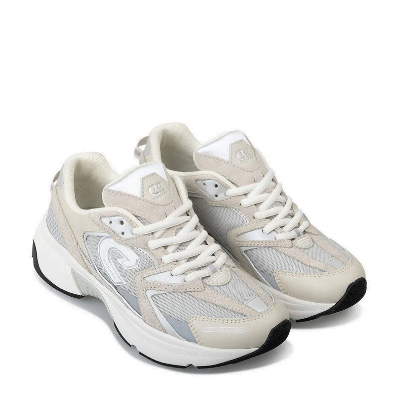 Sneakers de mujer de la marca Cruyff modelo Galaxy Runner CC243960-101 en color beige, tiene la parte superior de malla y piel. El cierre es con cordones.
