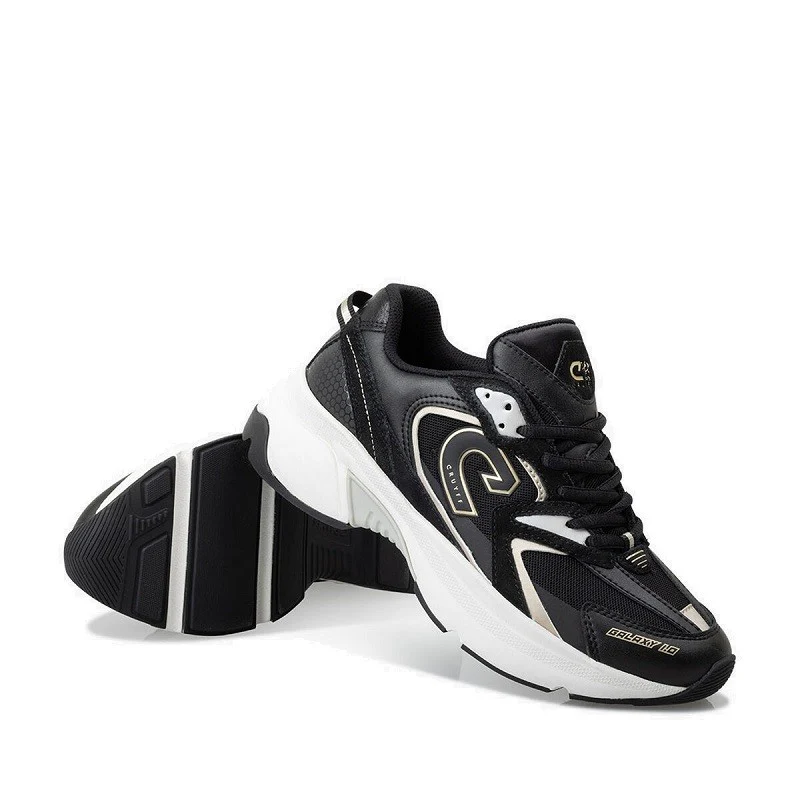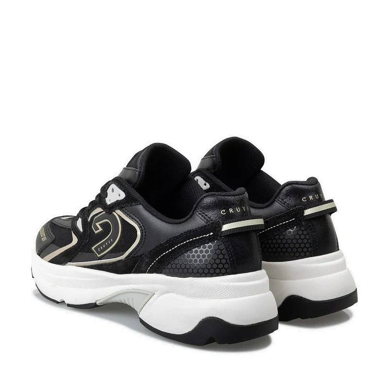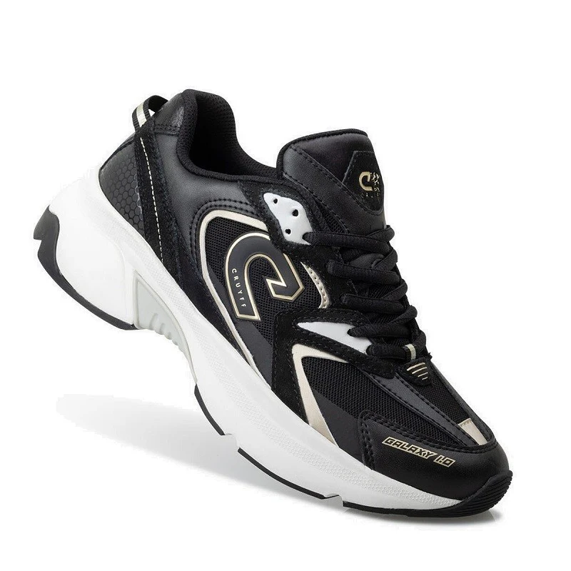 Sneakers de mujer de la marca Cruyff modelo Galaxy Runner CC243960-960 en color negro, tiene la parte superior de malla y piel. El cierre es con cordones.