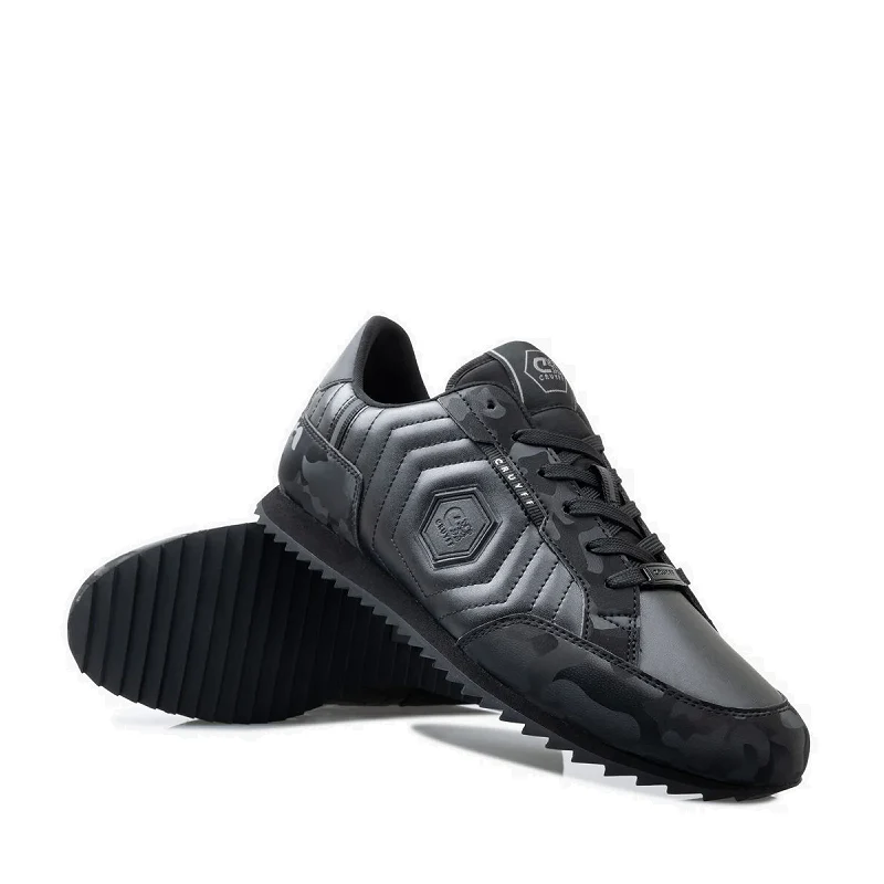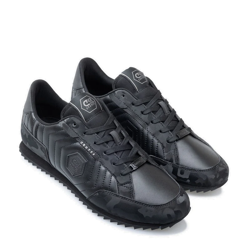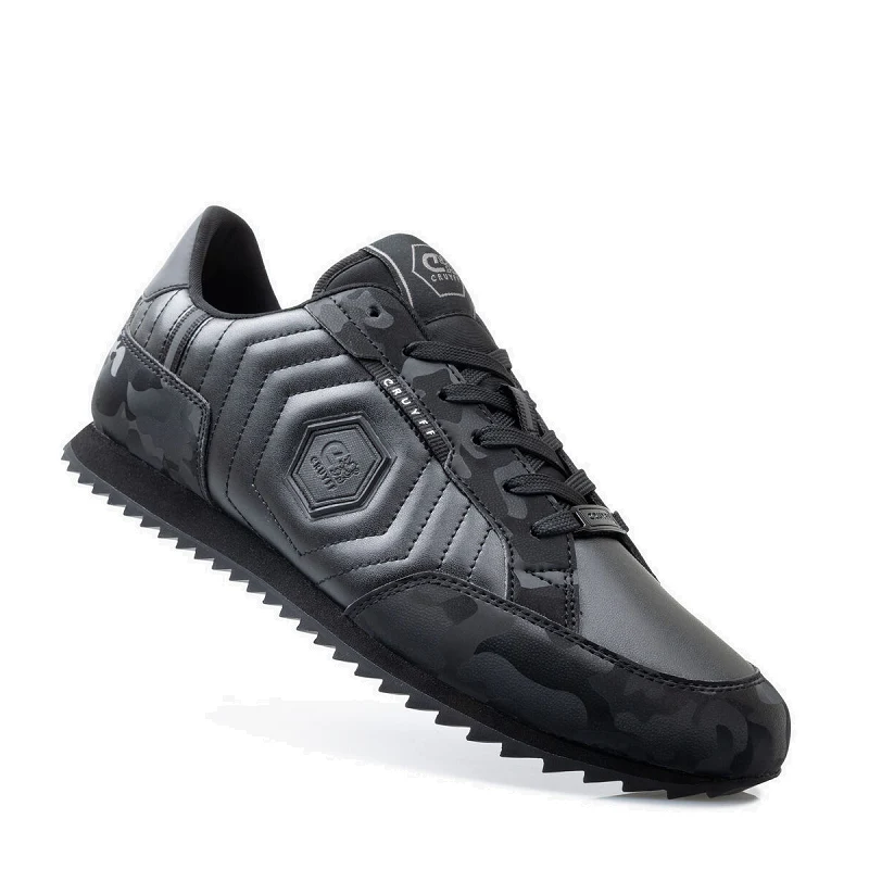 Las Cruyff Rezai están inspiradas en el fútbol y su parte superior está echa de cuero suave con paneles hexagonales y superposiciones de camuflaje. Tienen detallades con elementos reflectantes y un parche de goma del mismo color en el lateral.