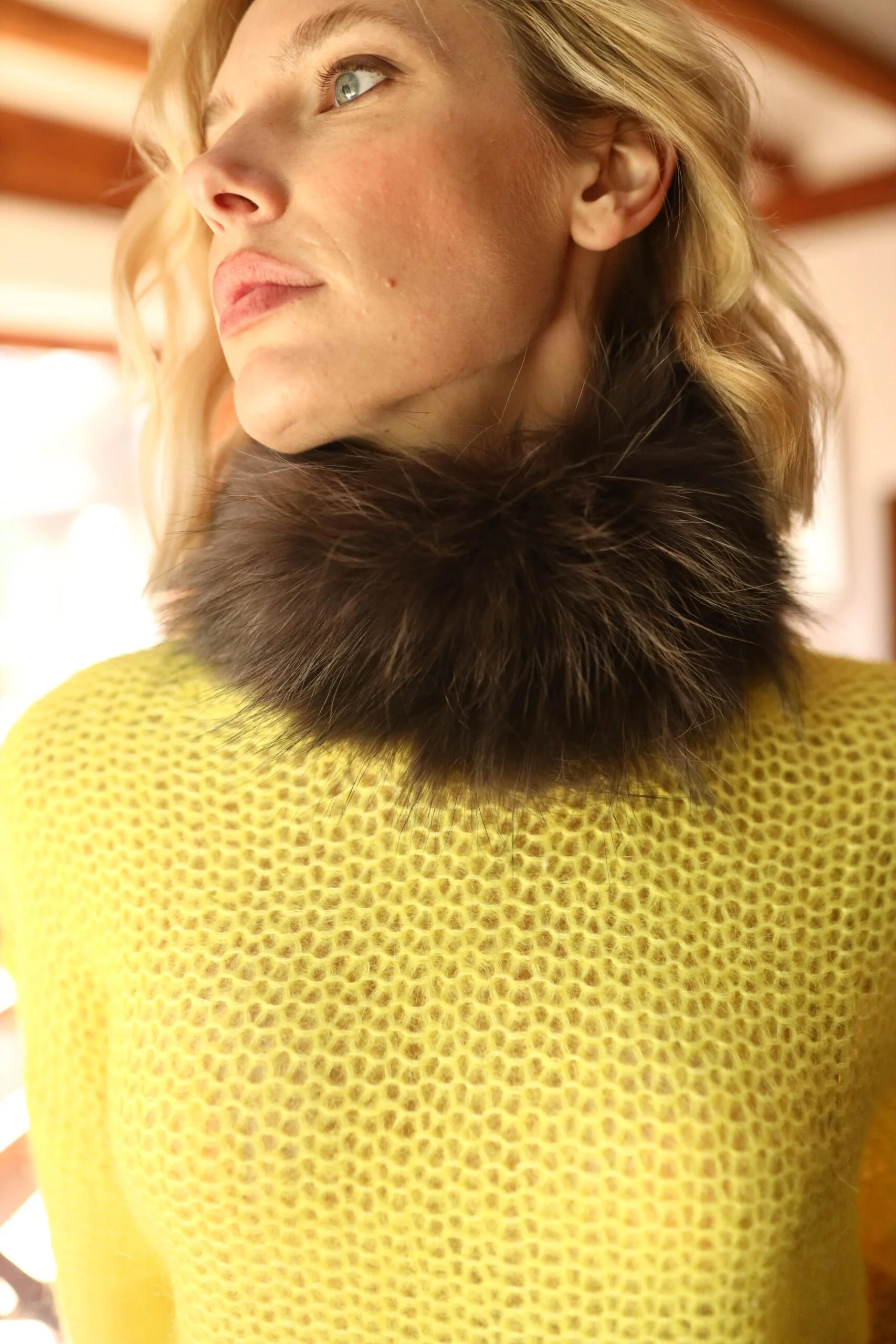 Cuello elástico de piel de marmota.