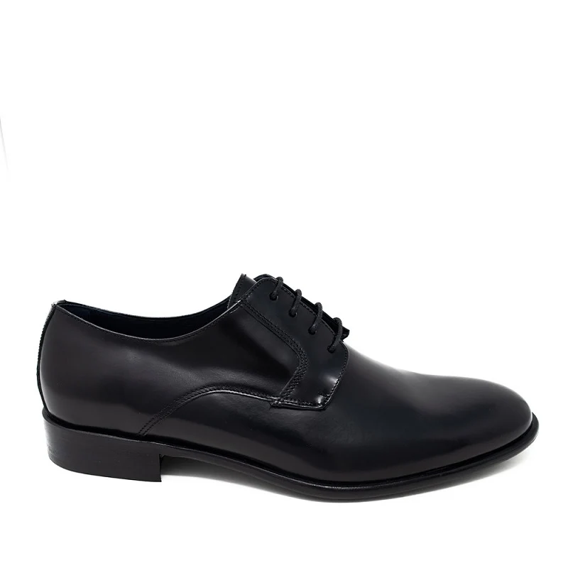 Zapatos tipo blucher con cordones para hombre. Elegantes y versátiles. Fabricados artesanalmente en piel de alta calidad en color negro. Confort absoluto