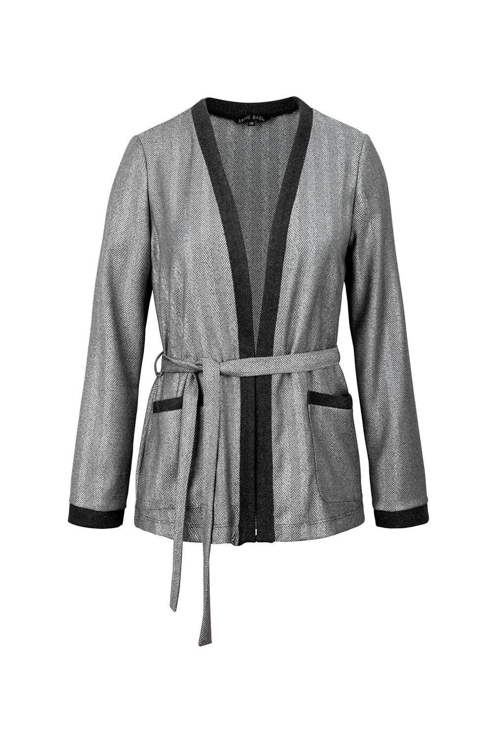 Ensamble sin solapa, cinto en cintura, contraste en bolsillos frontales tipo parche, puño y escote. prod. # 01-1072