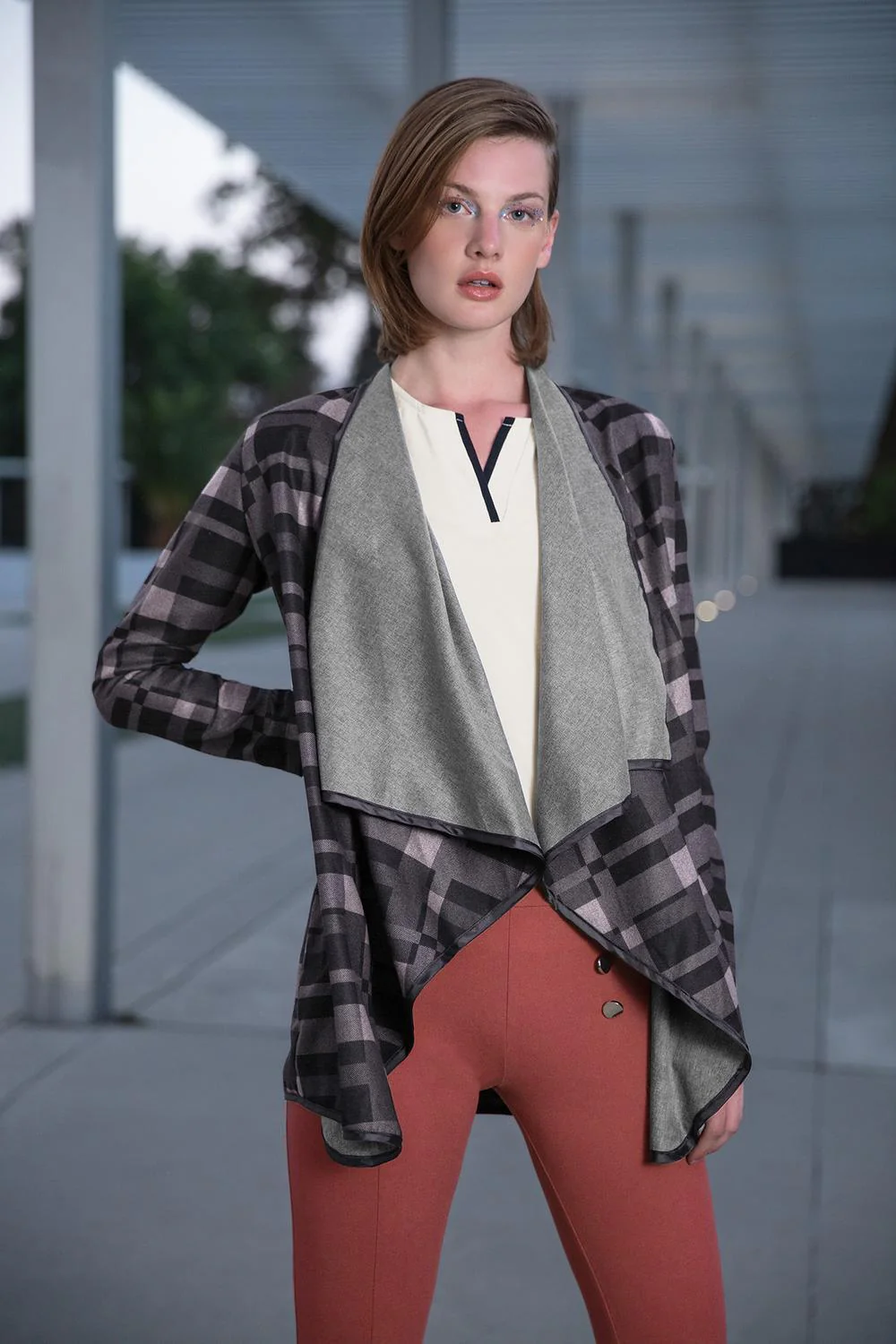 • Ensamble largo a cuadros con ruedo asimétrico.